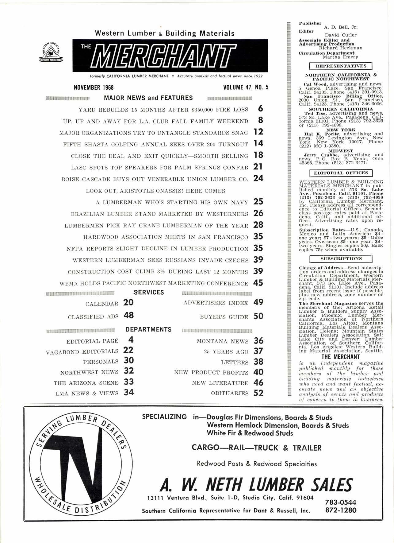 MATERIALS MERCHANT is PUb. lished monthly at 5?3 So. Lako Ave., Pa.sa.dena, Calif. 91101, Phono (213) 792-3623 or (213) 792-40ga bv California Lumber Merchant, Inc. Please address all correspondence to Editorial Offices. Secondclass Dostase rates Daid at Pasadena, - Calif, and additional offices. Advertising rates upon request.