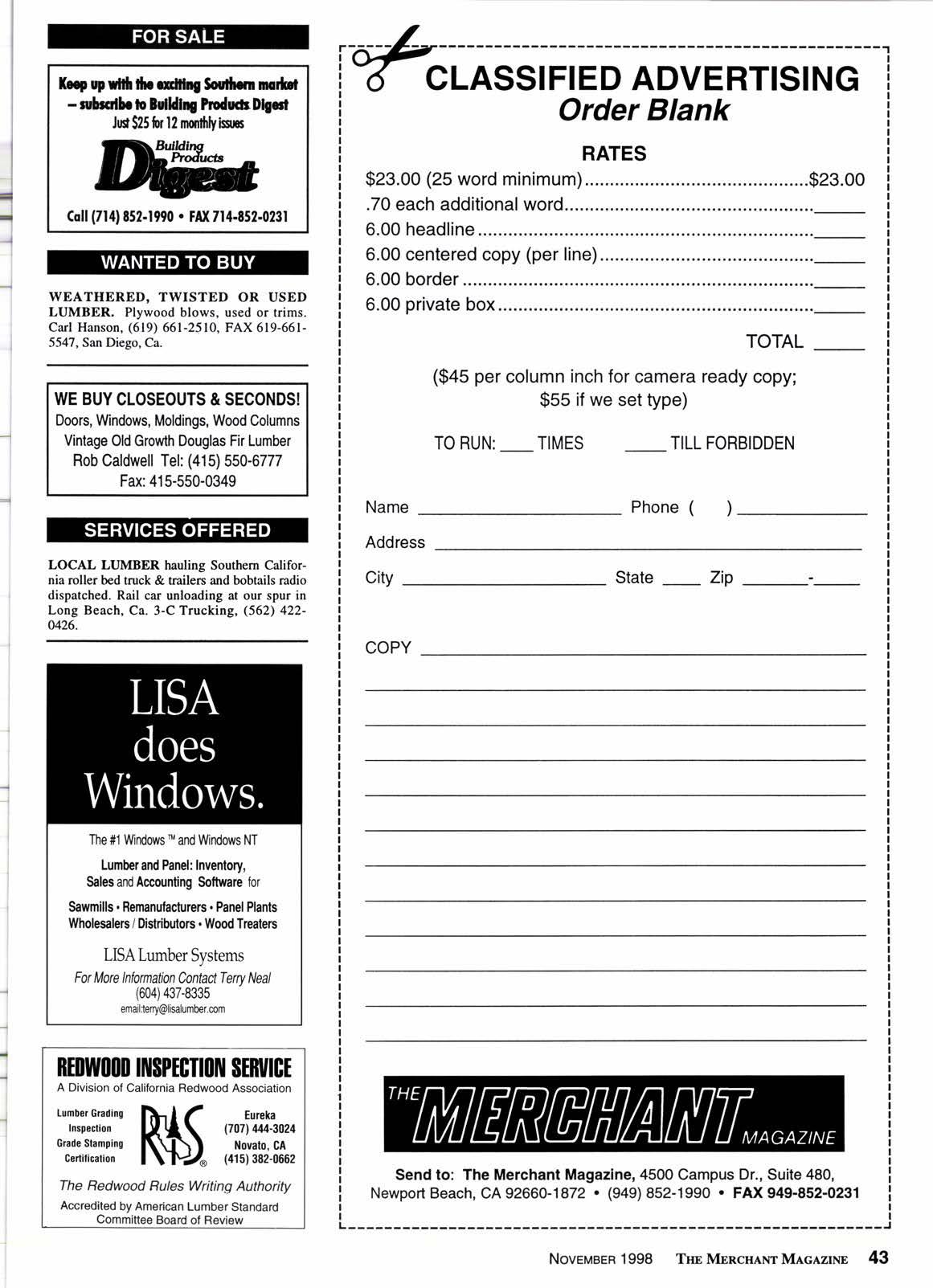 NOVEMBER 1998 Western woods Busines to slip ner yeor voLUME