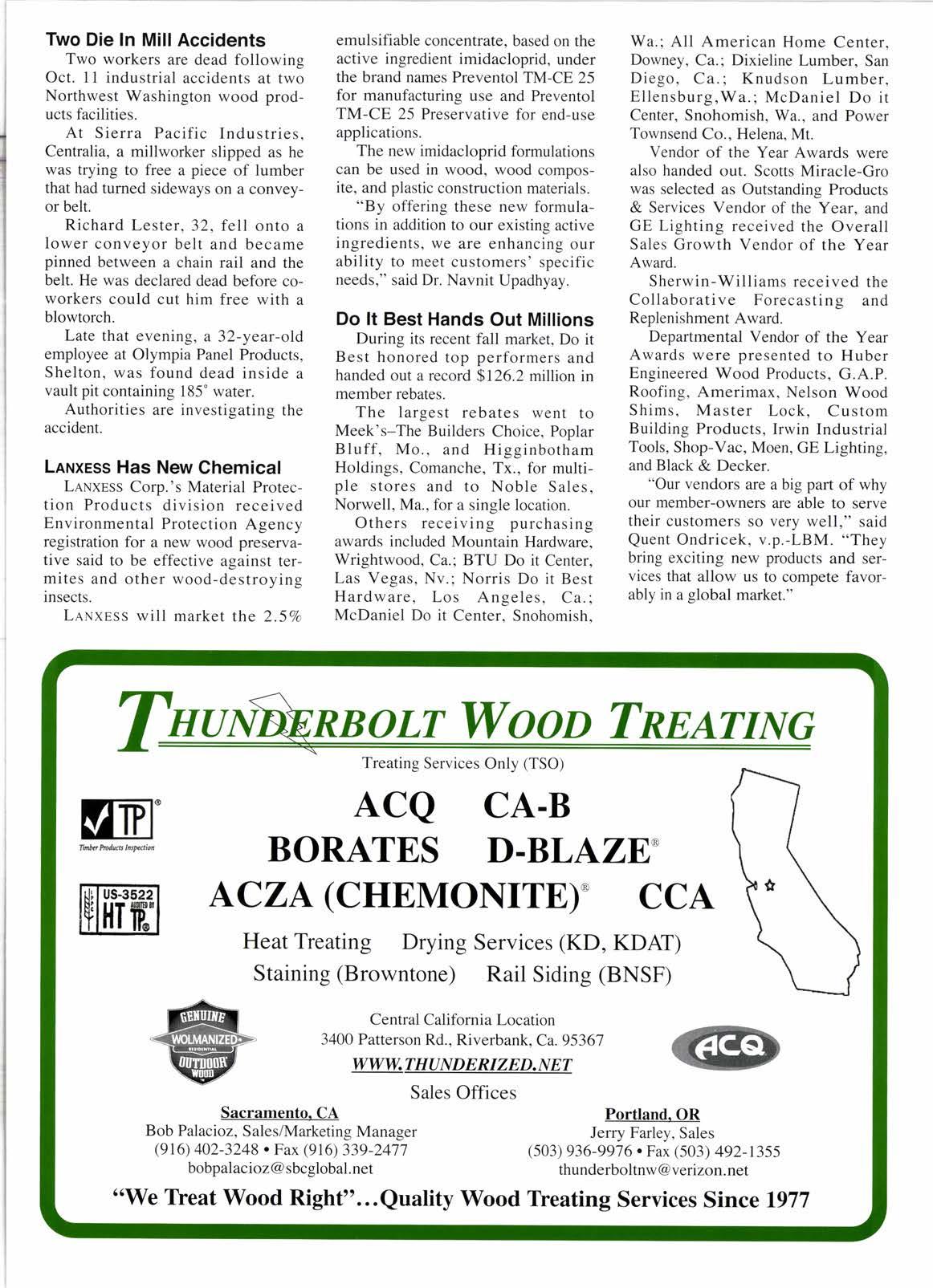 Wa.; All American Home Center, Downey, Ca.; Dixieline Lumber, San Diego, Ca.; Knudson Lumber, Ellensburg,Wa.; McDaniel Do it Center, Snohomish, Wa., and Power Townsend Co.. Helena. Mt.