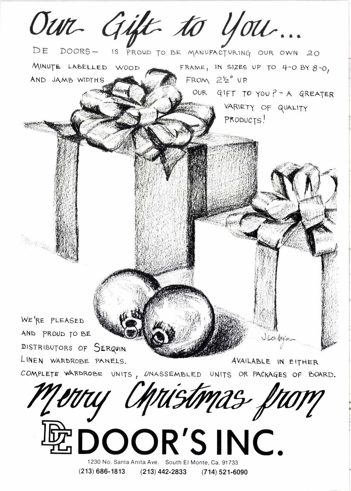 We'pe FLEASED ANU PR,OUD To bE DrsTRrBuroRs oF Senqu,u L INE N wARbRoBE PANEls. co4ptETe VrRuRoee UN tTS ouR etFf To you I - ,q, QReeleg VARIETY oF quALlTY Pnooucls 1 AVAILABLE tN E rrHER UNITS OK PACKAqES OF bOARD. $i:,, , ,NASSE,"\BLED ru EDooR's lNc. 1230 No. Santa Anita Ave. South El Monte, ca. 91733 (213) 686-1813 (213) 442-2833 (714) 521-6090