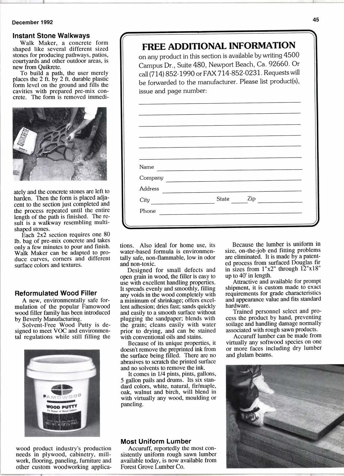 Even in 1991, when home building hit the skids, over 399,824,000 board feet of moulding, frames and jambs were produced and shipped. In addition, millwork producers with technologically advanced equipment and educated employees are capable of producing a wide array of other quality products. This is the message being taken to domestic and foreign trade shows.