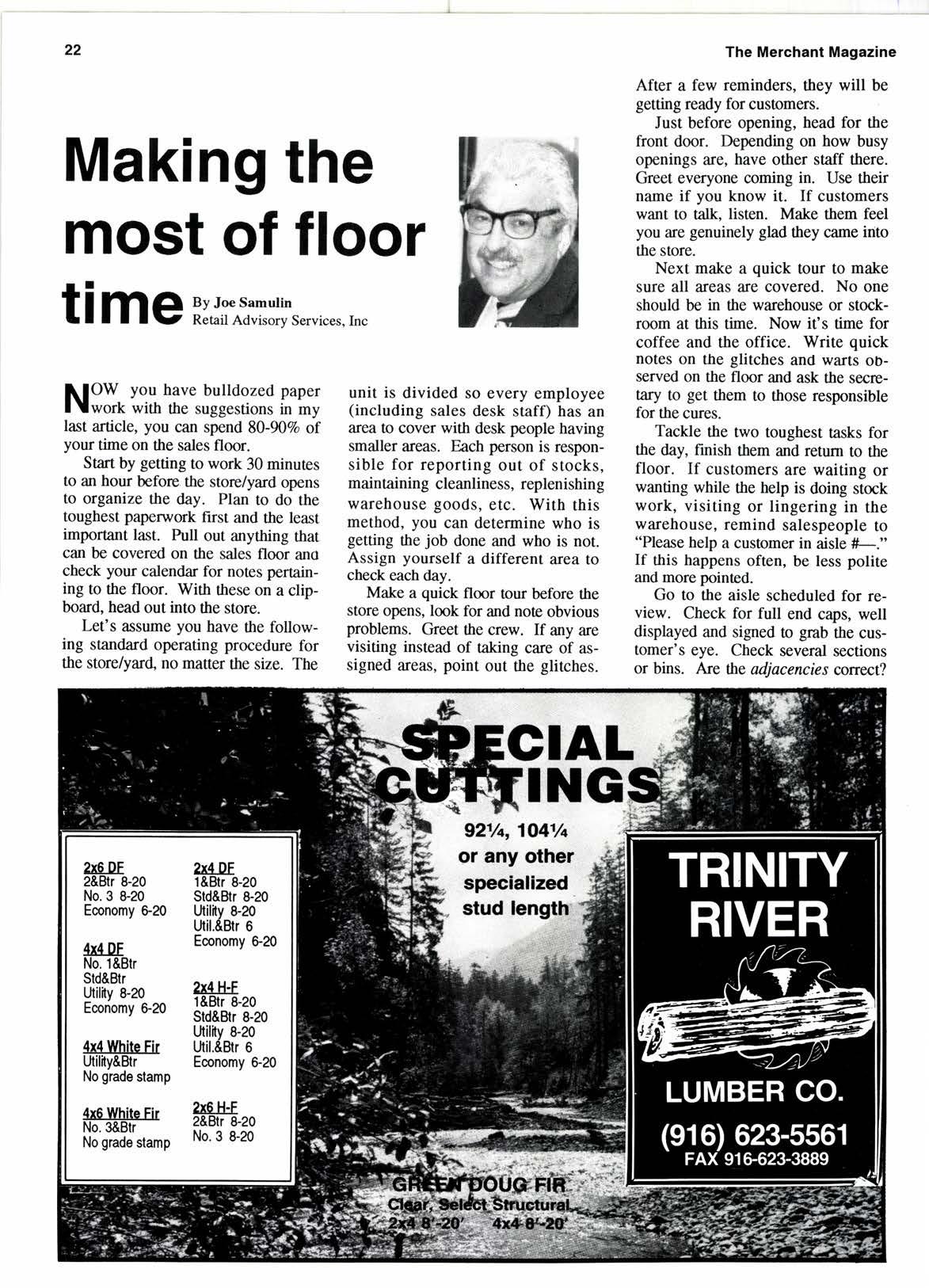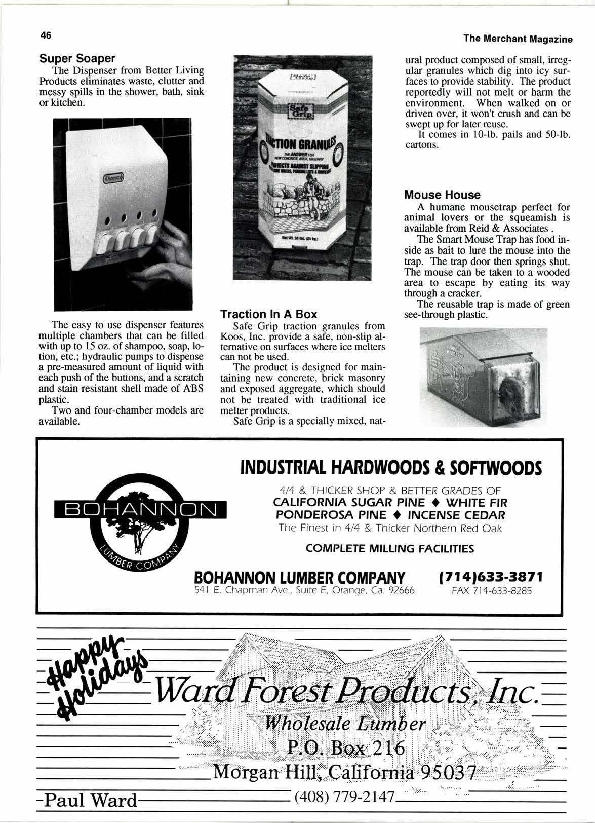 The Merchant Magazine AD ilNDEX Accurrte Plcning ldill ..-------....-- 47 Adsms Lumber Co. -..------.----3S Aff weathcr Wood Treeten *-.. ------n Anfinson Lumber Sdcs.----.....-----.t Bear For,ert hoducts-------..----...... 41 Berver Lumber Co. *--....----............ 37 Bluc Lrke Fonegt h'oducts (Univcrsd Forcst Pnoducts )..-.--*-- 36 Bohrnnon LumberCo Bowrnm Lunrber Sales *..-.-------...d Bncut Intenretional ----5t Cal Cosst Wholcsdc Lunrber, Inc.-----49 Cqliformie Cslodc Indugtries---- Cover III C&ELrnnberCo. *..s7 Hanel Lrnnber Co Ce$td Plywood *--.........15 3-C Tnrcking- ....-..-.......,() Chemonite ............-.Cover II Chanonite Cormcil -----.*...-.-.....---.-... 25 Chccn Trucking --....-....-,{3 CJ. Wholesde Redwood Lumbcr Co..---l) Colville Indlan Precision Pine Co...--.--rB Cotter & Co..-.-...---........**..----- l!) DAW Forect htducts..--....-----..- 23 Everjneen Lunber & Moldiry .---..--..34 Fontane Wholesde Lurnber, Inc--.-.-...-50 Forest Grove Lumber Co, IDc.---.....-.-..31 trlemmt Forcst Products.-..............----- 26 Goldiry Sultvan Lumbcr Sales......-....-...... 39 Gustrs Wood hoducts.............----.-.--.. 3t Hardwoods Unlimited.--...-.-.....---..- 21 Holrnes Lumber Co., Fred C. -.*------ 62 Hoover Treated Wood hoductr.----..-.8 Hnlf Lurnber Co. Indian Country .-..-----47 Indiana Wood h,erervine ..*--*-............ 35 hdustriol For=st hoducts-.........-.-.........- 30 Inhnd Timber Co.-....---.............. Cover III Intenratimgl Forest Pmductg -*...-..........- 30 Kellehcr Corp. .---.. Cover I Keller Lumber Co. ..-.--..-....-.------- 36 Kellcr Lurnber Salcs...---------..--.ll) IJB Lumber Sales -----------..*- 42 Loth Lumber- *---..--34 Lumbermen's Cr.edit Association --.-....-.. 53 MacBcrth Hardwood Co. -*-----..--.-D M&M Builden Suply---.......-...---*- 6l Mertin Fonest Products.-*--.-.--........... 26 Mcga Forest Pmducb.--.-.--.*---..--- 56 llfi d-Pmific Treding Co Inc.--*-..-**-- 5l) Mokdurnne River Forest hoducts-----51 NevaJo Forect Produc{r Industries -*--- 35 Nevsde Wood Prcserving ------*--- 40 Oregon-Cenadion Forect- hoducts ---.-.52 Prcific Forcst h.oductr **------*-.... 7 Pan Lumber Co. -----.------.-........ 19 FGL Building Produc{s-......----- Cover IV Philipc Lumber Sales----...-....-.......-.--- 43 Phoeoix bterprises ......-..-......-..-.-*-....- 34 h,oduct Salcs Co----.-----.-..--.......-..... 4 Redwood Coast Lurnber Cc .-....-.---*-51) Rtr? Lumber Co. 6.-......-*,-.-.*----- 38 Srrarnento Pacific Cor?, ---...-..--47 Sdme Truting Co.----..-------..- 40 Slerre Forert Pmduc{r *----..*--.-- 2l SisHyou Forcrt hoducts --..-----..--.49 South Bey Forcrt hodnctr Co..........-.-...- 3.3 Stinsoo Treding Co. --...--......-....--... 32 Stocktd Wholesde .---.--..-.-.--.-.-.-- 42 Surnwoo4 Incy3uchanen Hardwood---- 48 Sws Secur,e- ----.-.--51 Tlrurlerbolt Wood Treeting Co. ---.-.--Z TNT Lurnbcr Co----..--..---**..- Jt Tneated Forest Products ----------- 42 Trinity Rivcr Lumbcr Co. -------.-.-..t2 Unity Forert hoducb -...--....---.-.-.. 4l Werd Fortct Pnodudi----..--.......-..-*- 46 Wendliq-Nathan Co. .--.----.........-...... 52 Woodfold-M$co Manufacturing Inc.......... 37 ; Jr*i -: SlbY6Hotmes, Steve Hautala, Tod P.O. Box 80O, Fort Bragg, C.a.95437 ' t. (7071 964-6377 FAX 707-961.0935 Fred Hohnes 347O rowa City Rd., Marysviue, c..';itdi '--' " (916') 743-3269 FA)( 916-743-1537