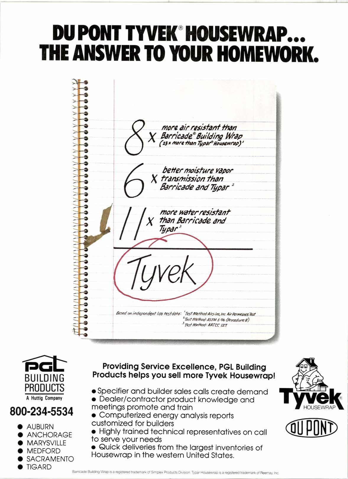 United Stotes.zs. f\5-7, -+-rN v\ -f+?f=PTNffiK 800-234-5534 AUBURN ANCHORAGE MARYSVILLE MEDFORD SACRAMENTO TIGARD o o o o o o mofe tyaftrl,etist'anf luveK Barricade Building Wrap is a registered trademark oi S mplex Products DvisDn Typar Housewrap s a regisie€d trademark of R€mav, nc