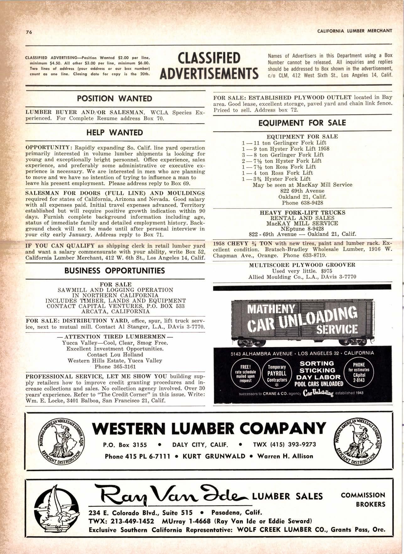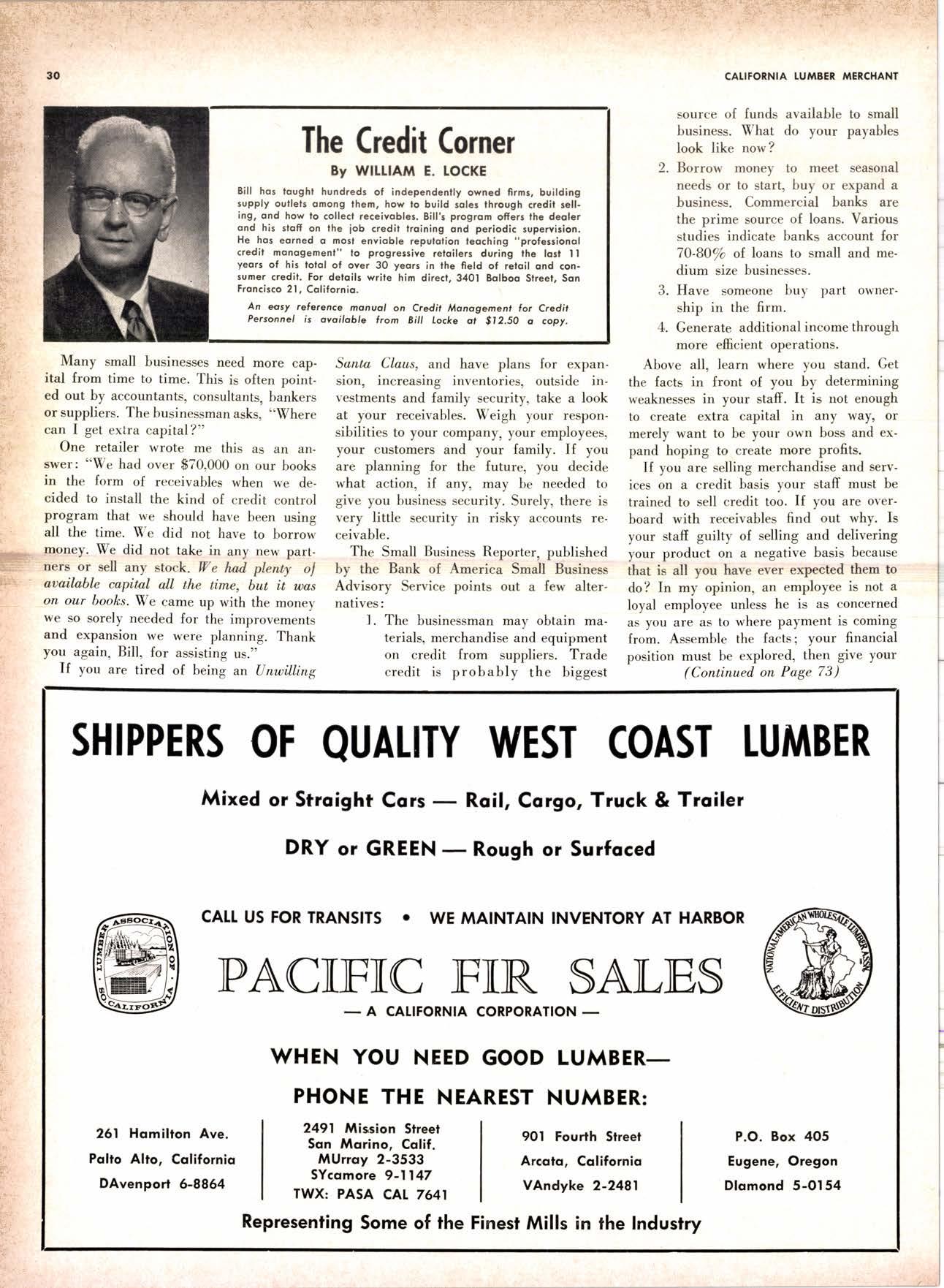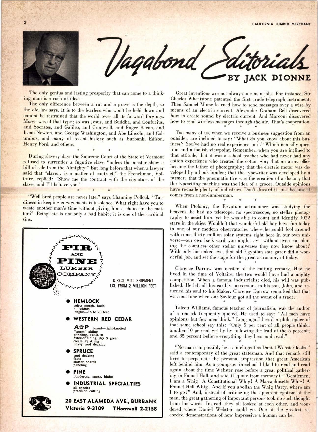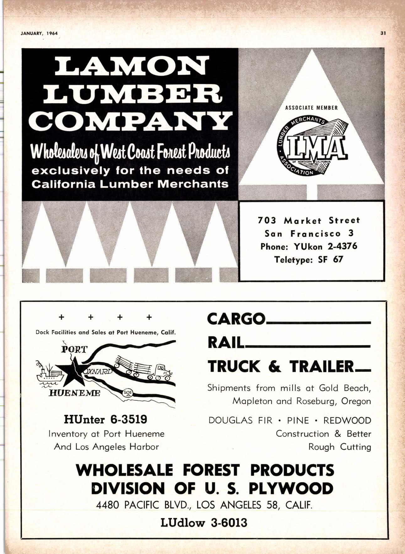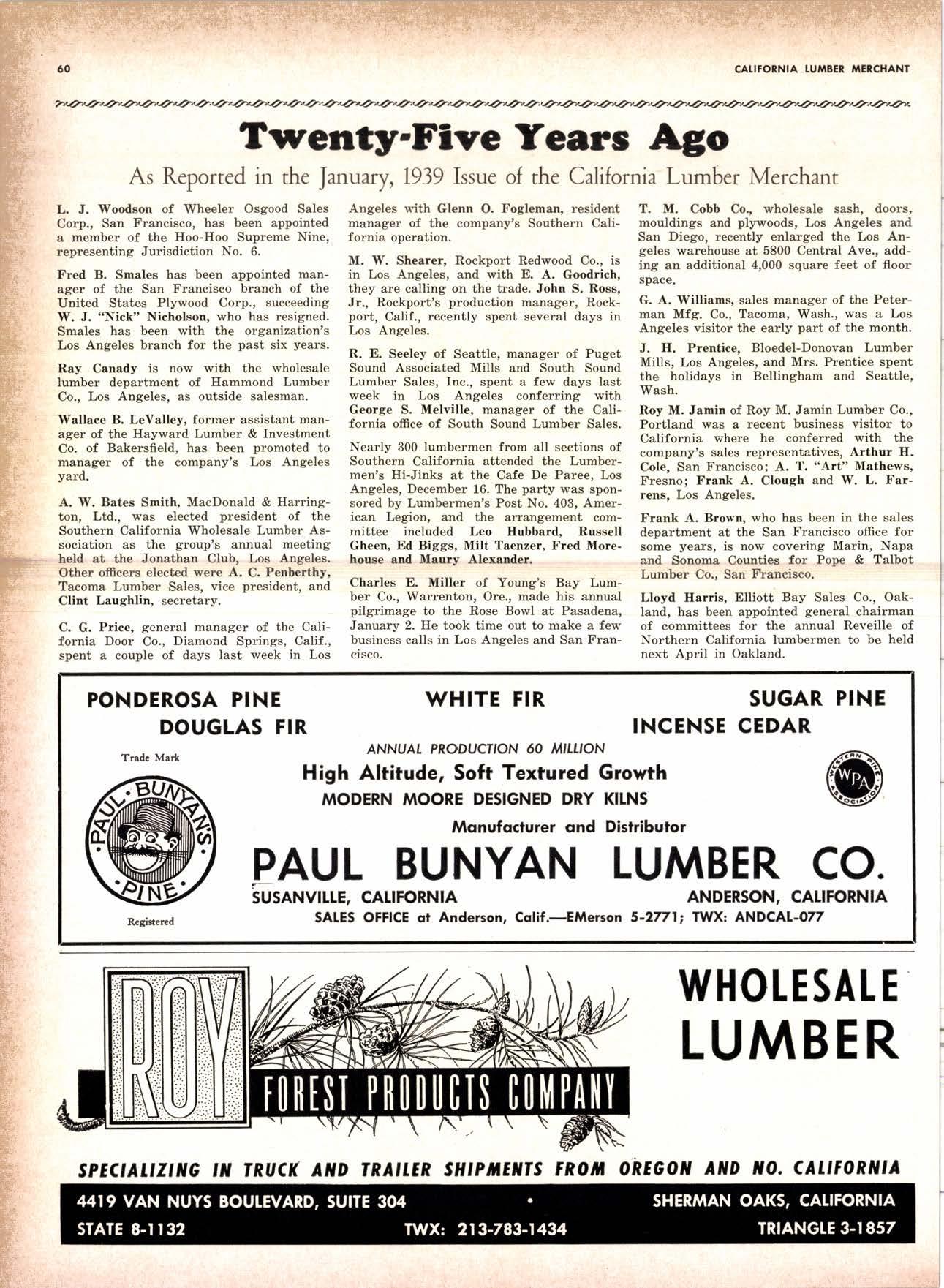 IIe began his lumber career unloading cars for E. K. Wood Lumber Co. in Huntington Beach in \922 not knowing redwood from fir. It wasn't long, however, till he was changed to counter work and thence to E, K. Wood's San Pedro yard and later on moved to their Los Angeles ofrce where he was located in the Industrial Department serving the oil industries, manufactuters, motion picture industry. For the last six years with E. K. Wood he was assistant to the late Percy Mercetino in the wholesale and purchasing departments.