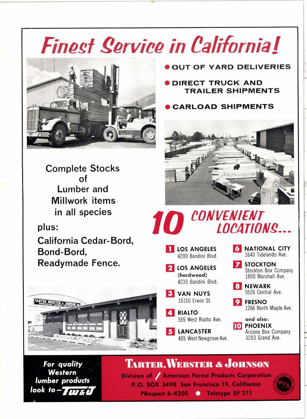 Although hardly any ofour customers order it by its true name, Philippine Mahogany is a big item at HigginsLumber. Over thepast83 years we've earned a reputation as specialists in this great wood. And for good reason. We consistently carry the biggest stocks on the West Coast. That means you can always get uniform color to match plywood and mouldings-andthe right texture for interior or for marine use. It's just one of 52 expertly selected hardwoods you'll find atJ. E. Higgins Lumber Company, 99 Bayshore Boulevard, San Francisco, California. VAlencia 4-8744.