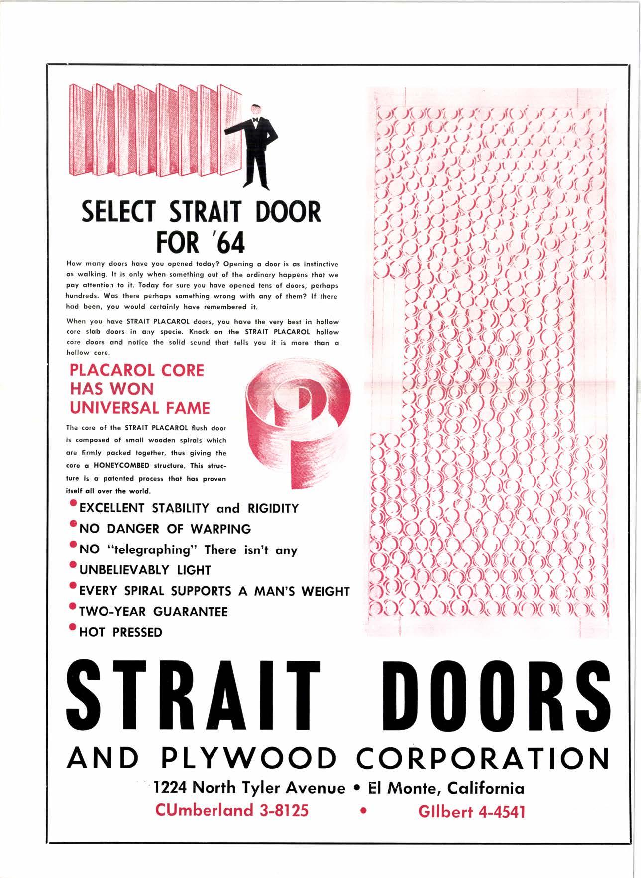 When you hqve STRAIT PLACAROL doors, you hqve the very best in hollow core slqb doors in ony specie. Knock on the STRAIT PIACAROI hollow core doors ond nolice the solid scund lhqt fells you it is more lhqn o hollow core.