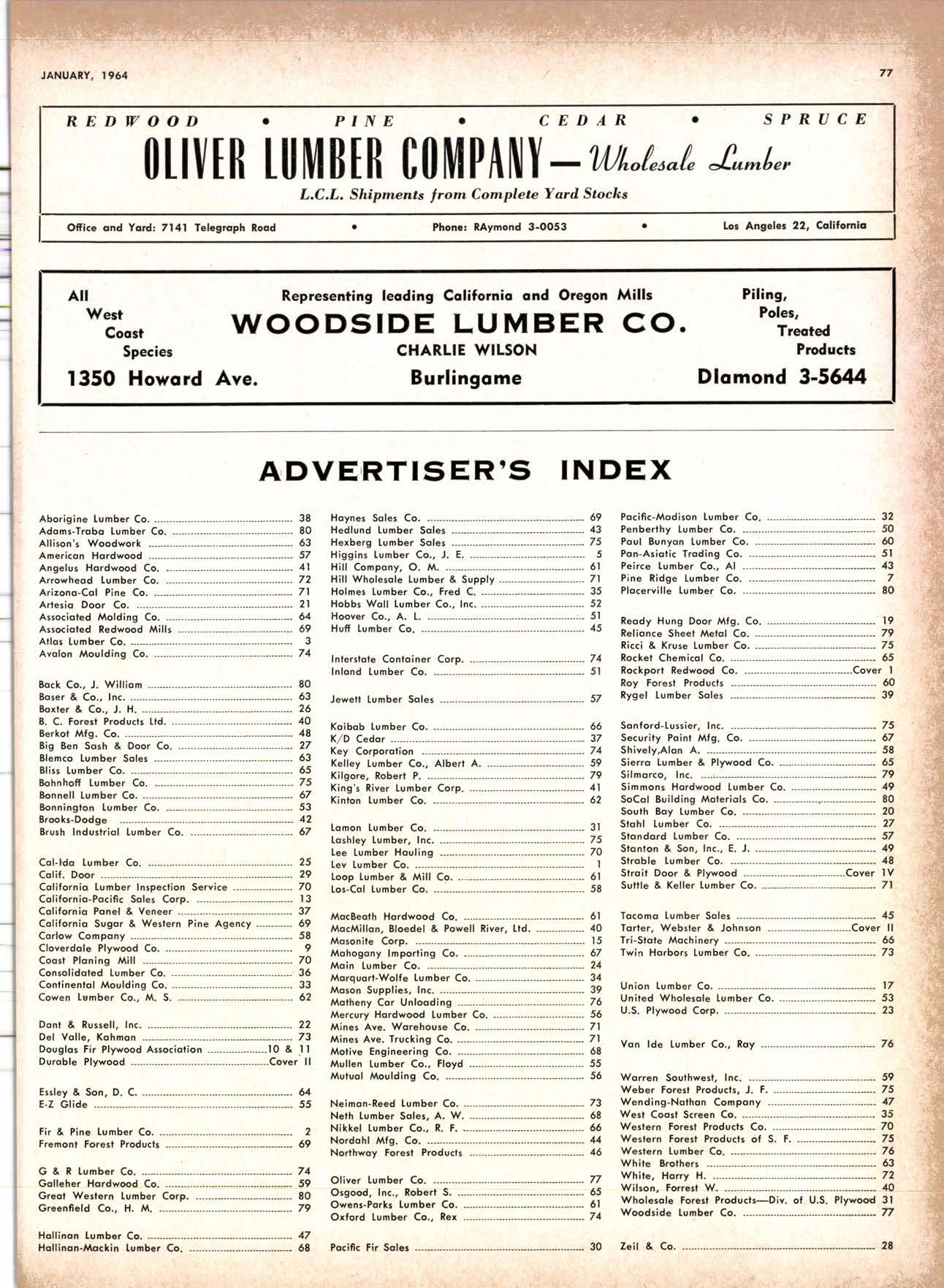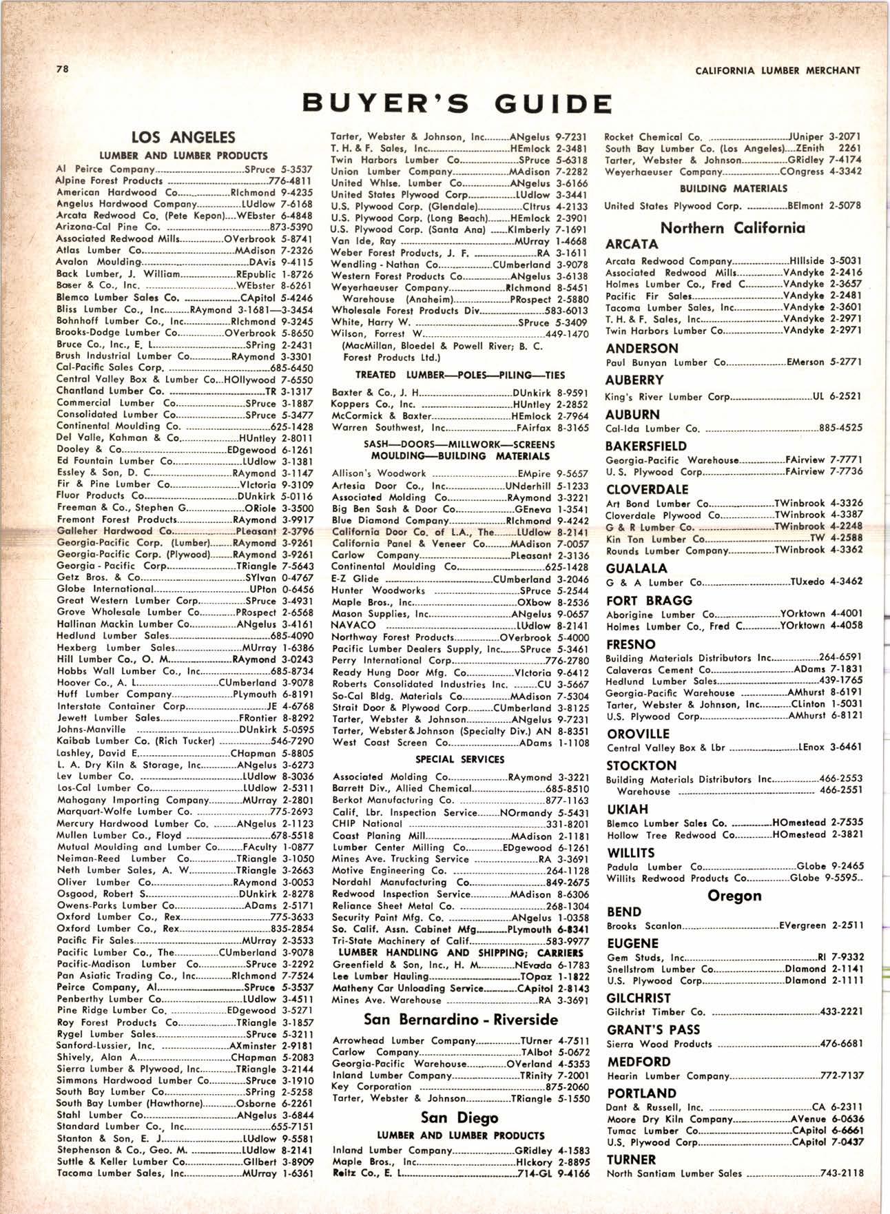 Donl & Rusrell, Inc. -----.---------.----..--.....CA 6-231 I A{oorc Dry Kiln Compony-----.-.--.---..-.lVcnuc 606i16 Turnoc Lumbcr Co,-..-----------------..-.-----CApifol 66661 U.S. Plywood Corp..---...--.----......-....---.CApifol 7-Ott7