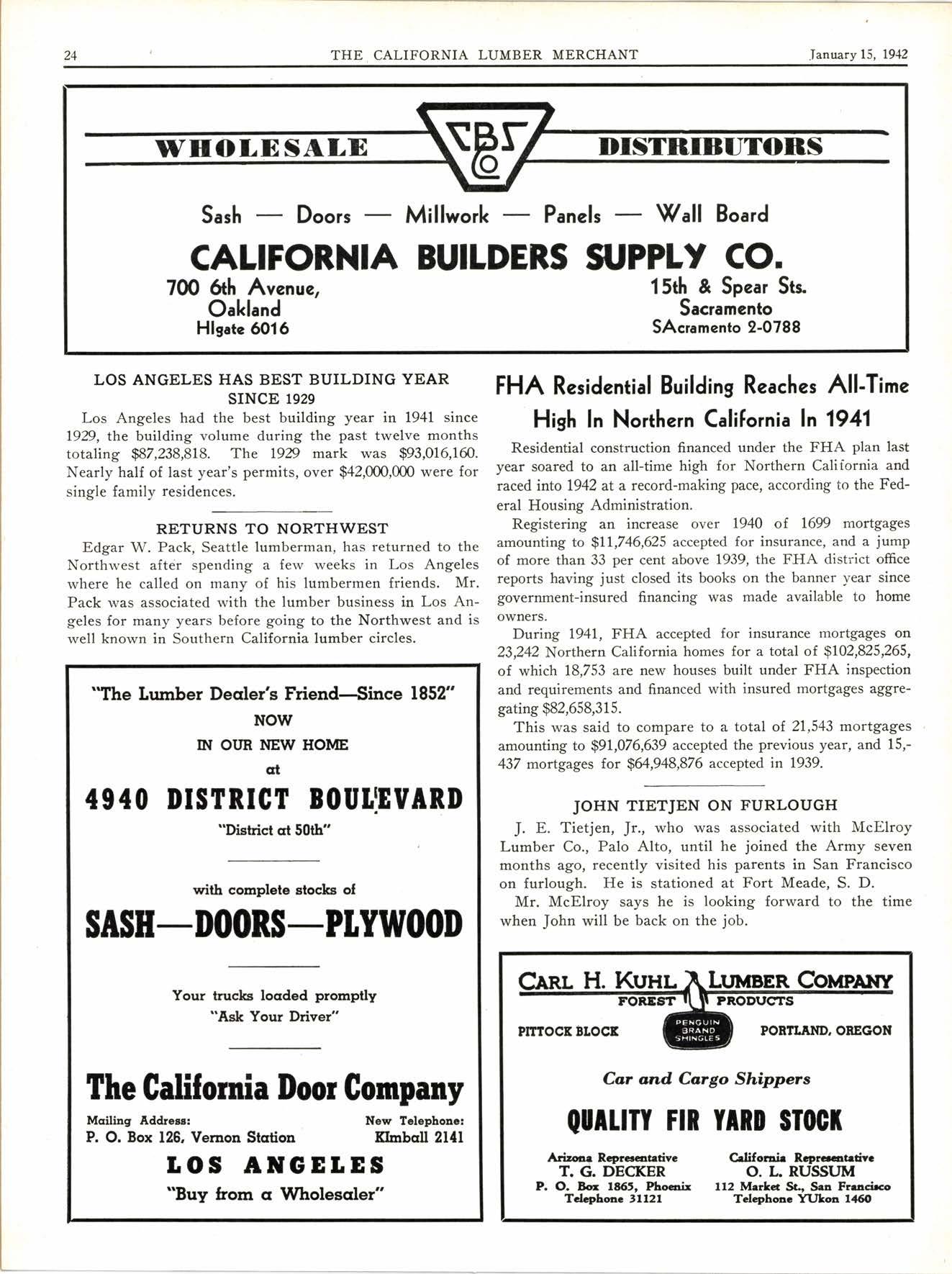 FHA Residcntial Buildins Reaches All-Time High fn No*hern California ln 1941