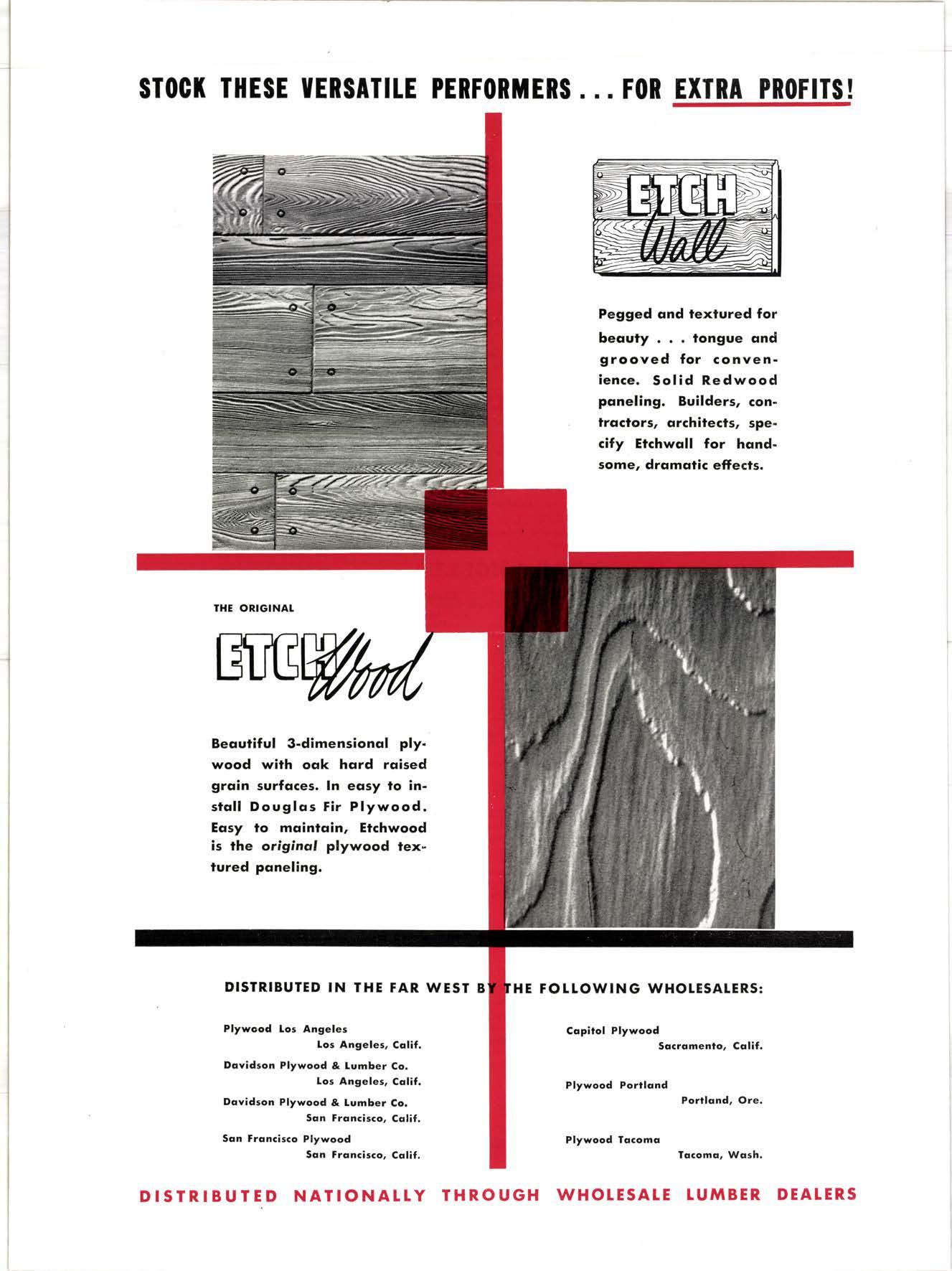 Beouiiful 3.dimensionol plywood with ook hord roised groin surfcces. In ecsy to instoll Douglos Fir Plywood. Eosy to mqinlqin, Etchwood is the original plywood tex" tured pcneling.