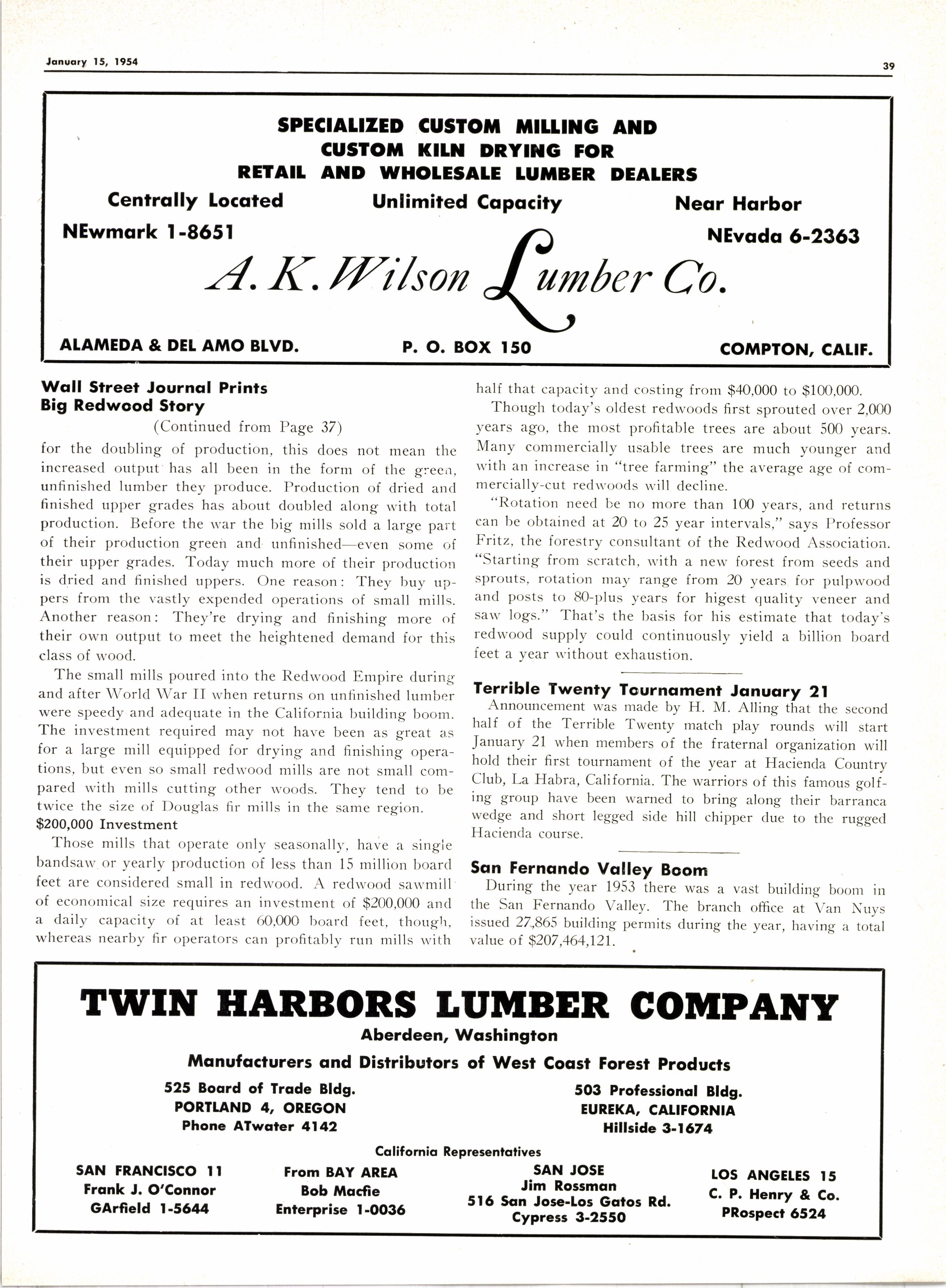 "We've got the glamor girl of the conifers," declares Sherman A. Bishop, sales manager of Union Lumber Co., another big producer. He adds: "Today it's a 'must' in lumberyards in the Eastern states. Where ten years ago these yards might have had a single bin of redwood, norv they have whole alleys- and there's at least one l0o/o redwood yard there now."