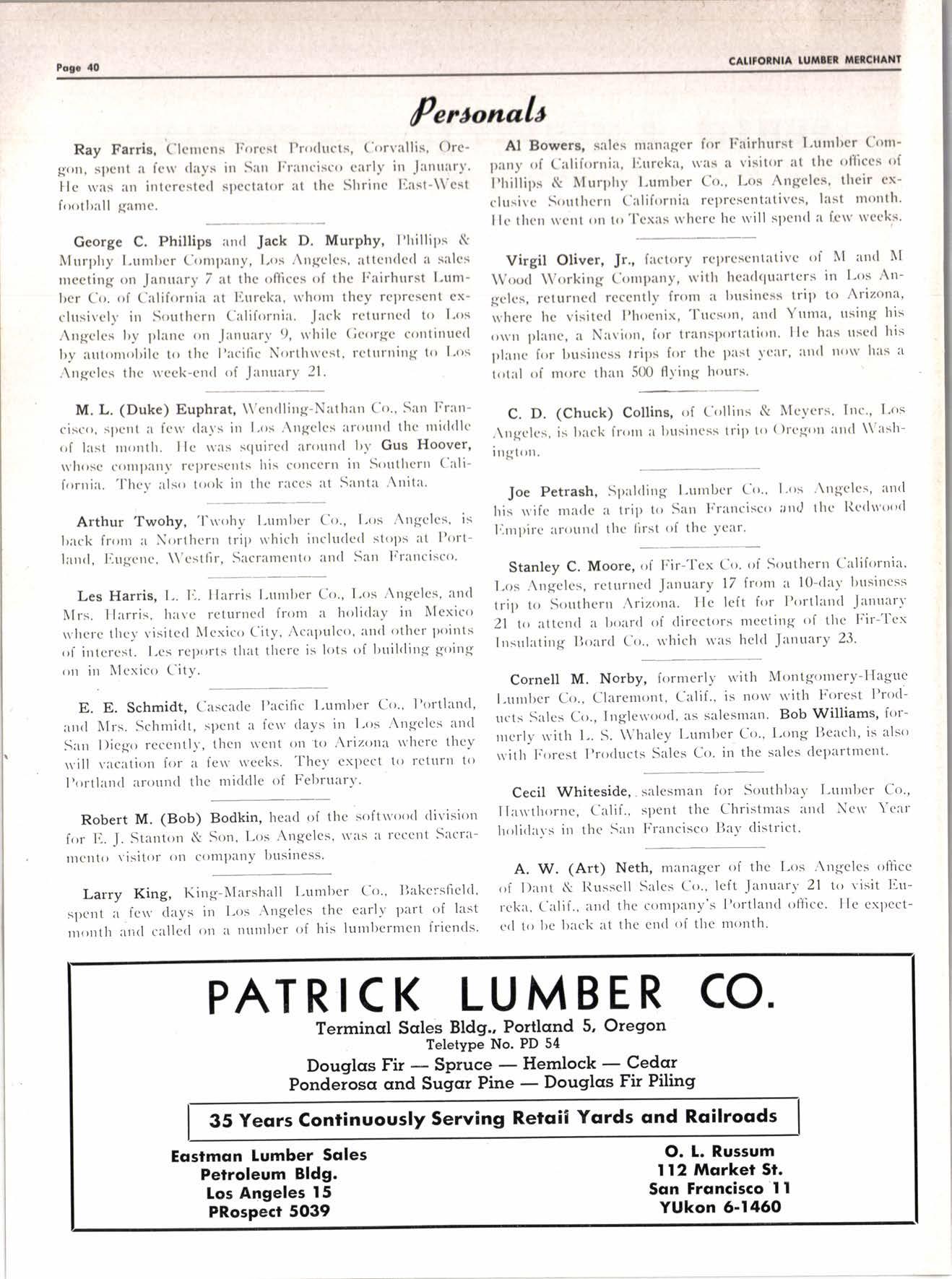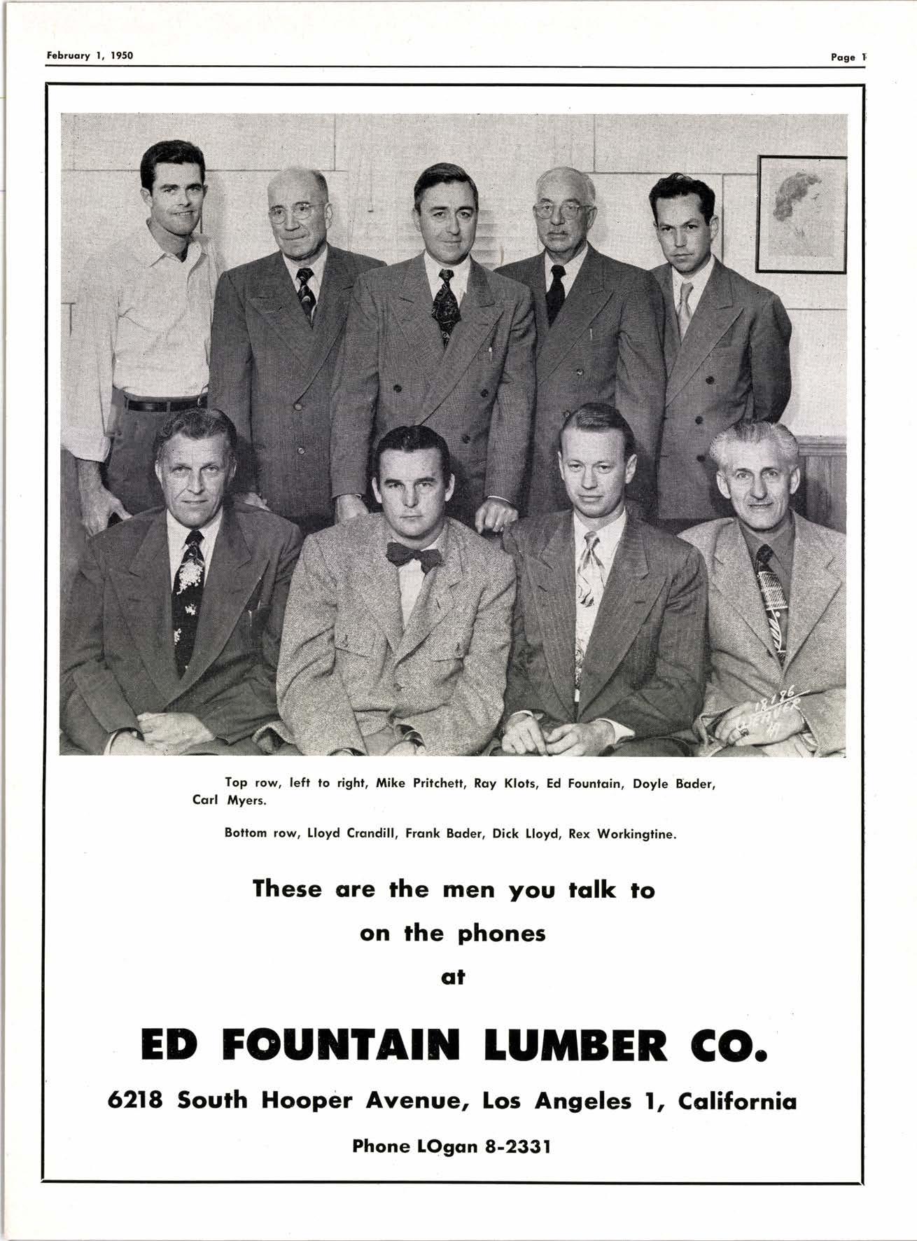 These ore rhe men you rcllk fo on the phones ED FOU]ITAIN 1UTIBER CO. 6218 Sourh Hooper Avenue, Los Angeles l, Coliforniq Phone LOgon 8-2331