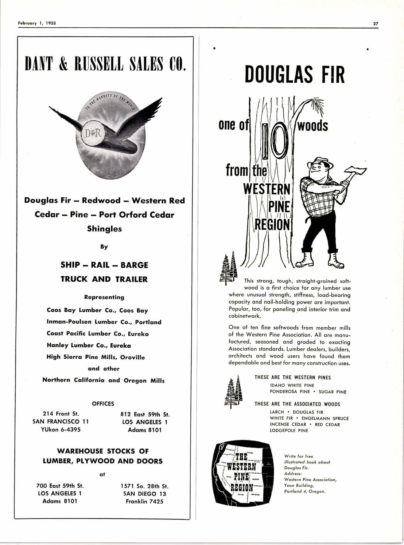 Lumbir Co...........VAleacic l-5832 Cords Lumber Conpcay. ..YULon 8-5306 Daal d Rusgell Sclca Co............Mlrrion 8-{332 Dcvis Lunber Co., Dcve........Gleawood {-l85l The Robert Dollcr Co.. ...EXbrooL 2-8r!54 Elliott, F. W..... ..DOuglcs 2-{2ll Empire Redwood Co.... ....YUkon 2-3522 GqmeratoD 6 Grcca Lunber Co....JUaipor 5-5083 Hcll Co., Jcneg L. .SUttcr I-7520 Hclli4cn Mcckiu. lumber Co,......DOuglcg 2-l9ttl Hcnmond Lumber Co.. ..DOuglca 2-3388 Hobbs Wcll Lunber Co.. .GArlield l-752 Holmes Eurekc Lumber Co........GArlietd l-1921 Idcco Luber Co...... ..VAlencic 6-577? Lqmon Lumbor Co... .. ....Ylll:on