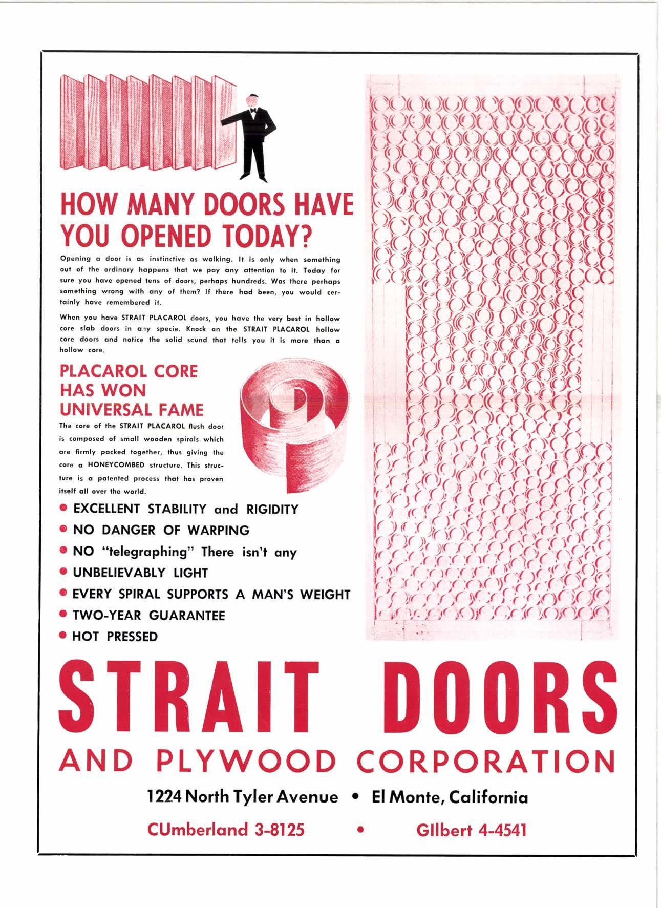 When you hove STRAIT PIACAROI doors, you hqve the very best in hollow core slob doors in cny specie, Knock on the STRAIT PIACAROI hollow core doors ond notice the solid scund lhdt lells you ii is more lhdn o hollow core.