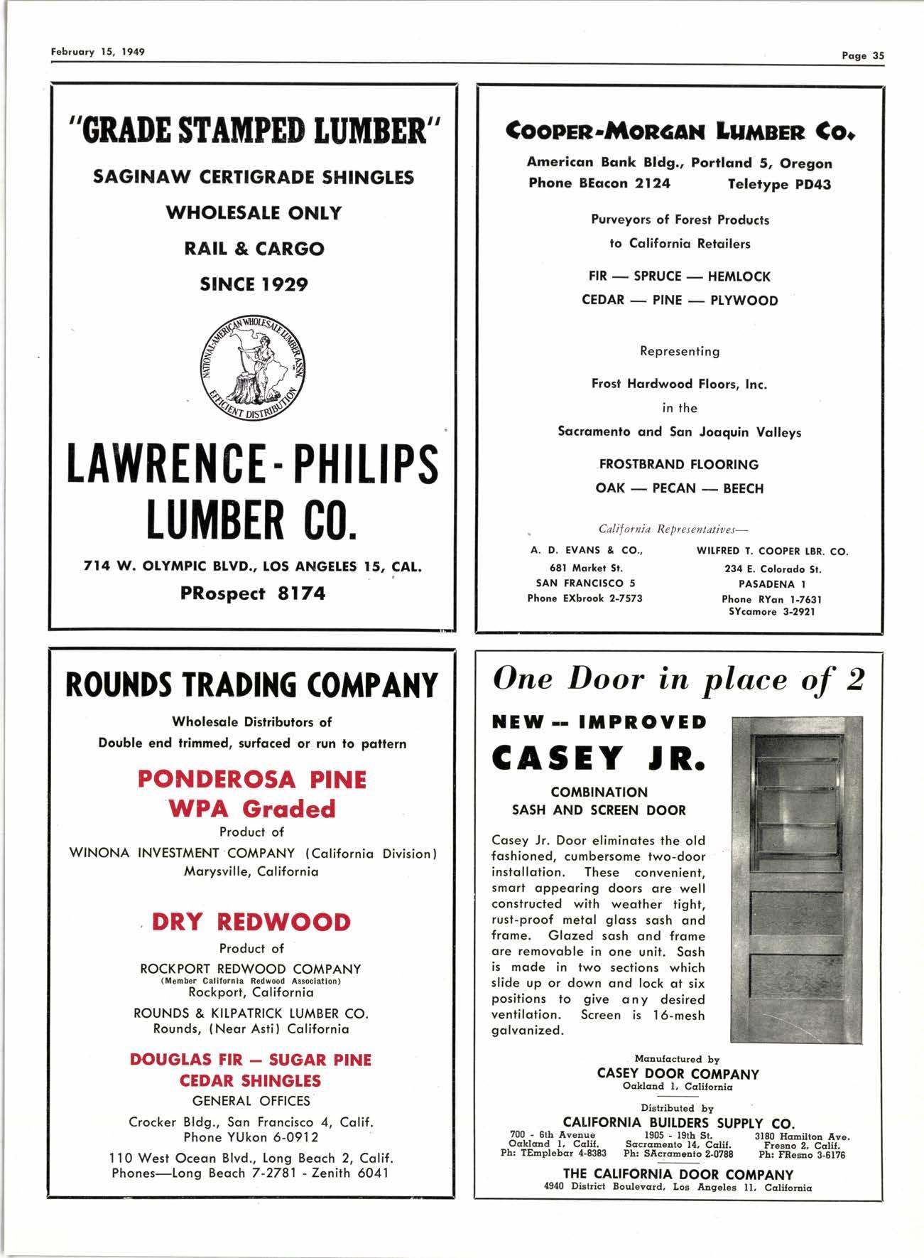 Address Box C-165| California Lurnber Merchant 508 Central Building, Los Angeles 14, Calif.