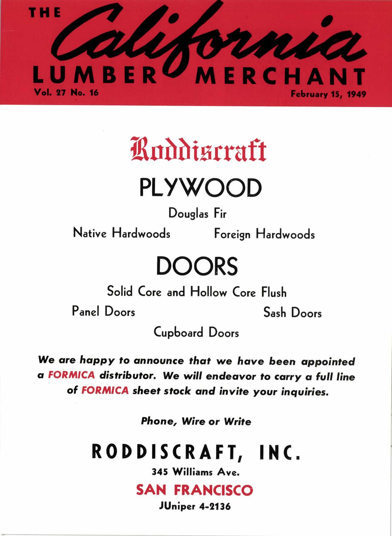 we ore happy ]o announce thot we hqve been appointed o FORJIIICA distribulor. We will endeo,v.or to cqrry q fvII line of FoRMrcA sheef sfock grnd invite your inquiries, Phone, Wire or Write