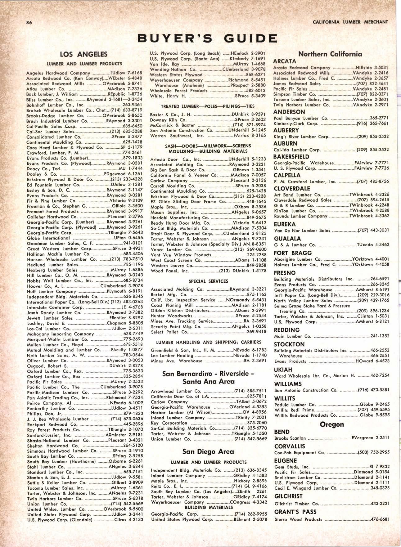 South Boy Lumber Co. (Loc Angelesl.-..ZEnilh 2261 Torler, Websler & Johnson -..--.--.--..-..-GRidley 7 -4174 Weyerhoeuser Compoay