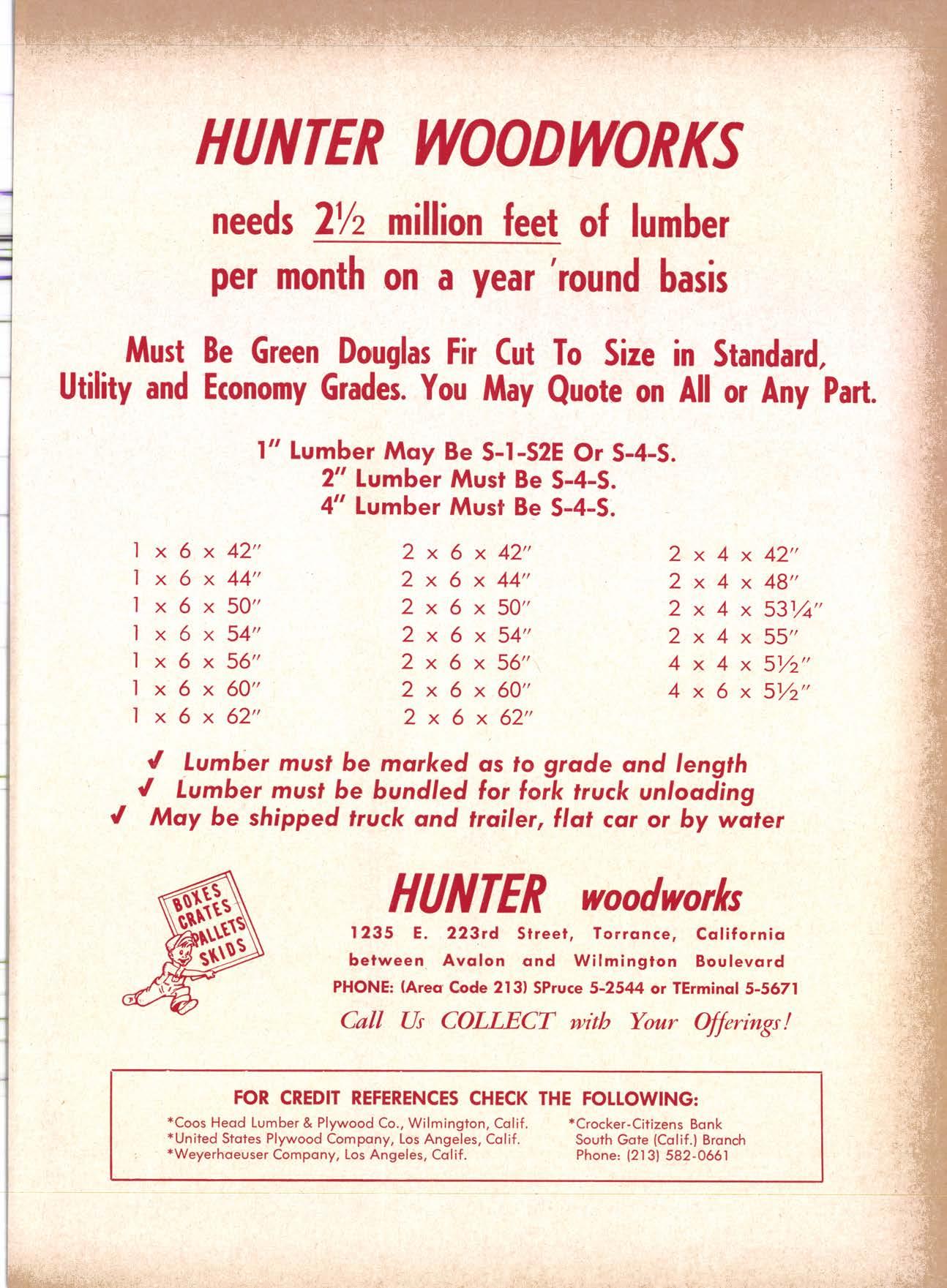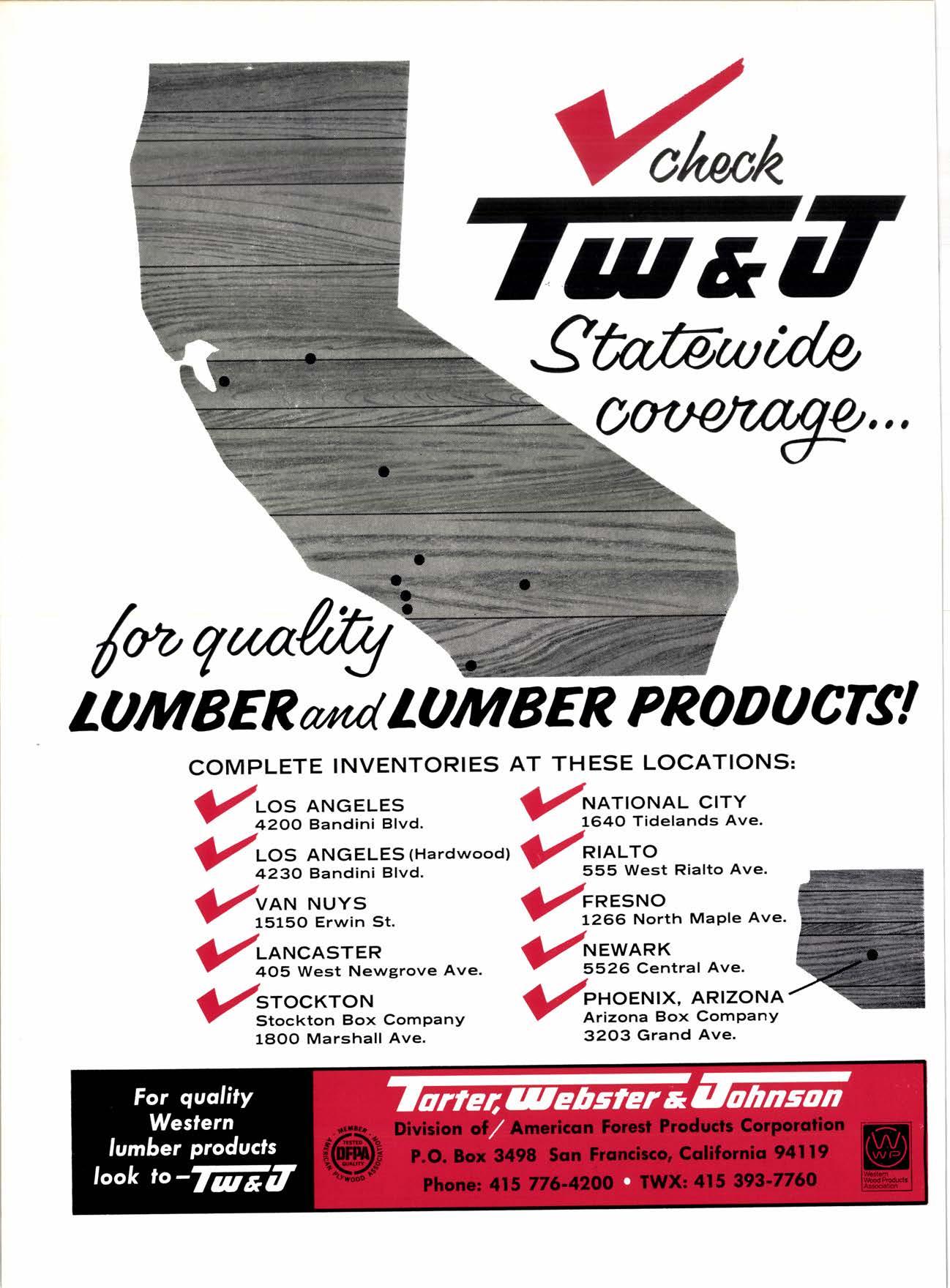 The success of'meeting dealer requirements with our Bull's-Eye approach in Southern California makes it a natural for dealers in Northern California who need positive answers ...fast, too. Bull,sEye Buying puts your needs at the top of the list with leading saw-mills in the best production areas. Four buying offices are constantly checking species being cut, end products and availability. so we can give you an answer right now! At the same time, our marketing staff is checking construction reports, architectural trends and dealer requirements for feed-back to the mills. This results in anticipatory demand and allows us to have inventories on tap for immediate shipment. Chances are the material you need is ready for loading. : a result of Bull's-Eye Buying!