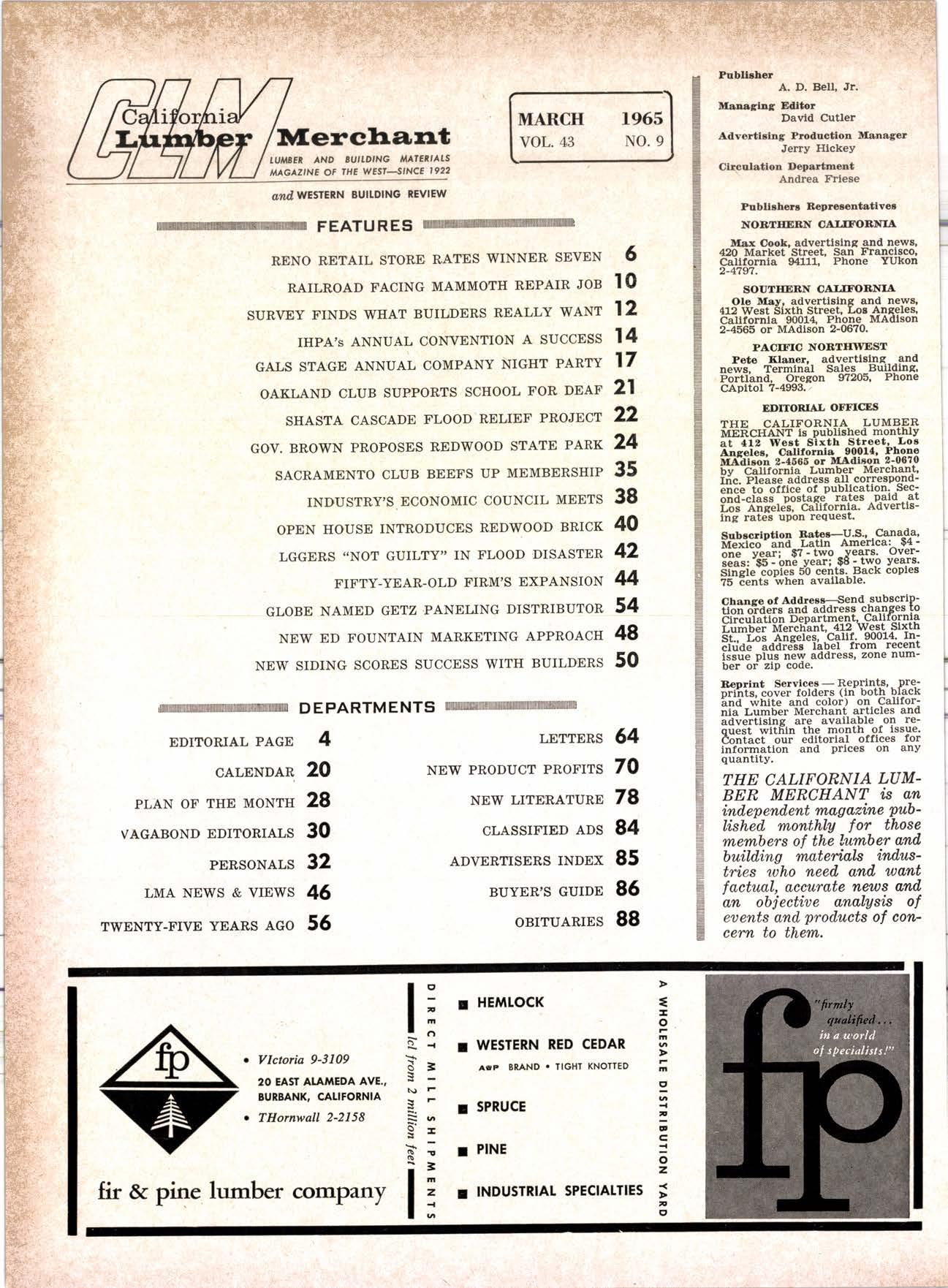THE CALIFORNIA LUMBER MERCHANT is an ind,ep endent mag azine Pub' li.she(I monthW for those members of the ltumber ond' bui.lding mnteri.als ind,ustries uho neeil onil wont factual, accurate neuts and un obiecti,ae onaWsis of eaents and products of cow cern to them.