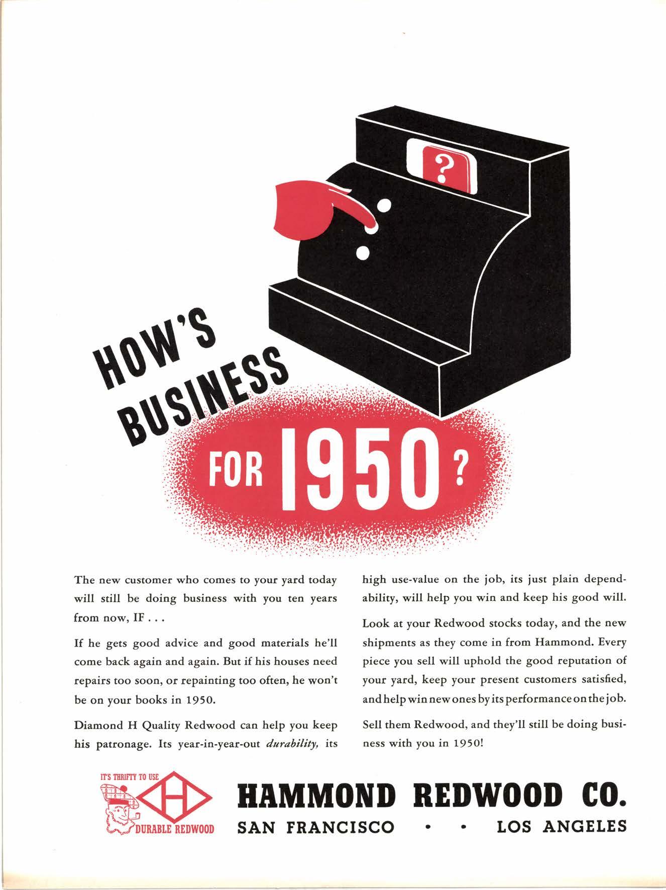 Look at your Redwood stocks today, and the new shipments as they come in from Hammond. Every piece you sell will uphold the good rePutation of your yard, keep your Present customers satisfied, andhelp win newones byits performance onthe iob.