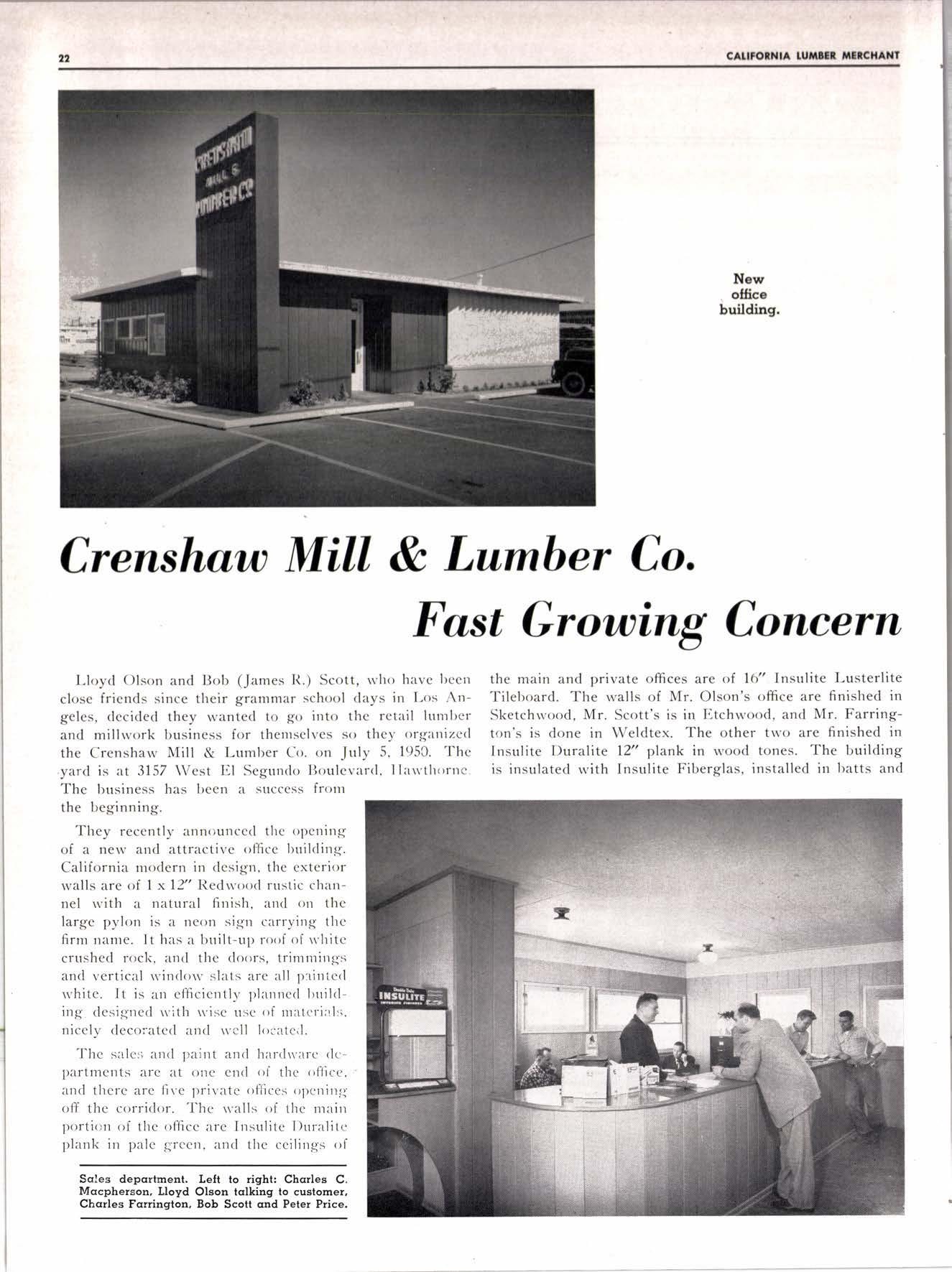 Crenshcw Mill & Lunber Co. Fcrst Growing Concern