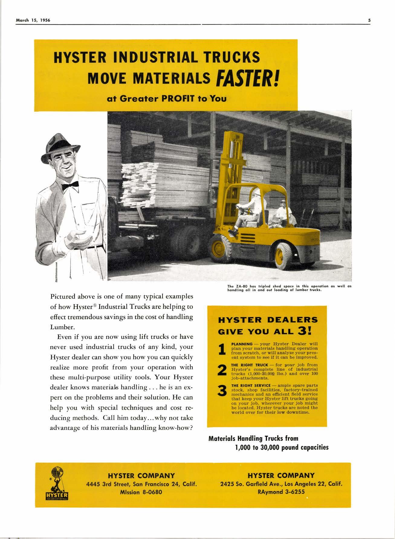 HYSTER COMPANY 4445 3rd Slreel, Sqn Frqncisco 24, Calil. Mlssion 8-0680