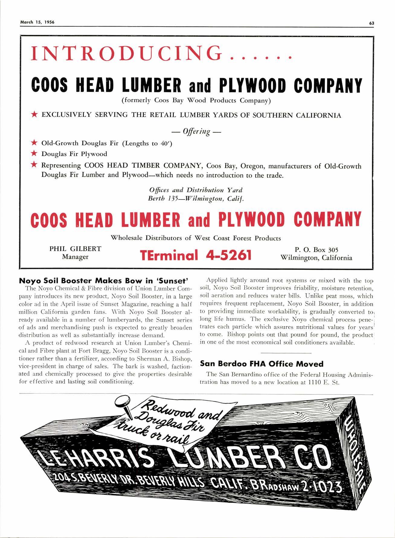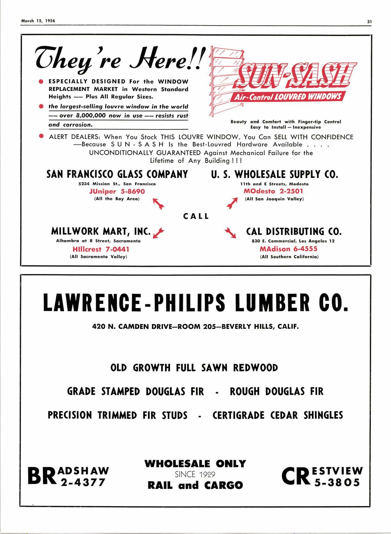 Socronrcnto 2727 651h St. . Phone GLndstone 22657 0oklcrnri o 8400 Boldwin St. o Phone L0cklroven B 2578 Berkeley Hordwood Co. 2546 Son Poblo Ave., Berkeley . Phone AShberry 39?24 March 15, 1956 iJ:'-'#