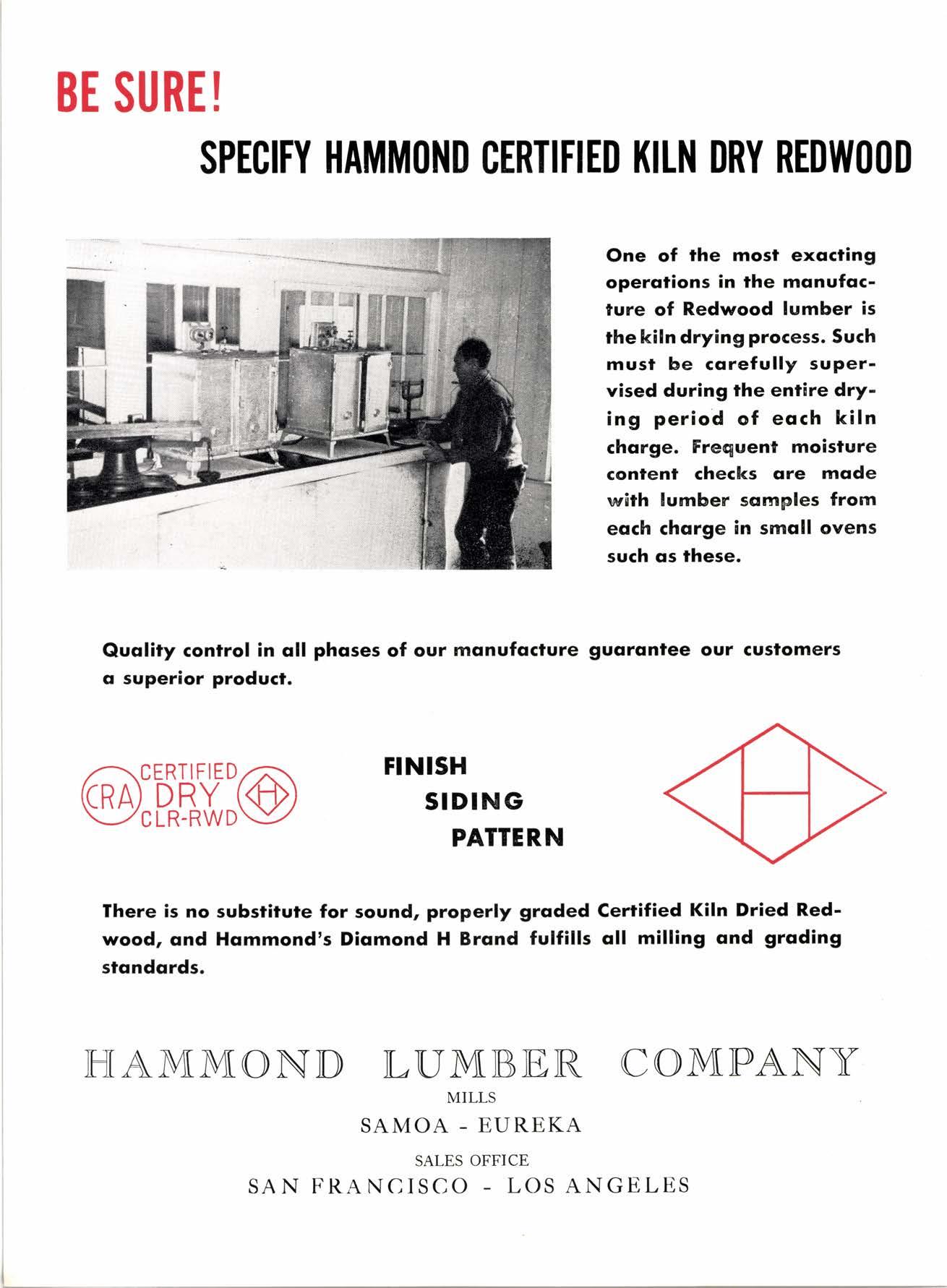 There is no substitute for sound, properly groded Cerrified Kiln Dried Redwood, ond Hommond's Diqmond H Brqnd fulfills oll milling ond grcding stondqrds.