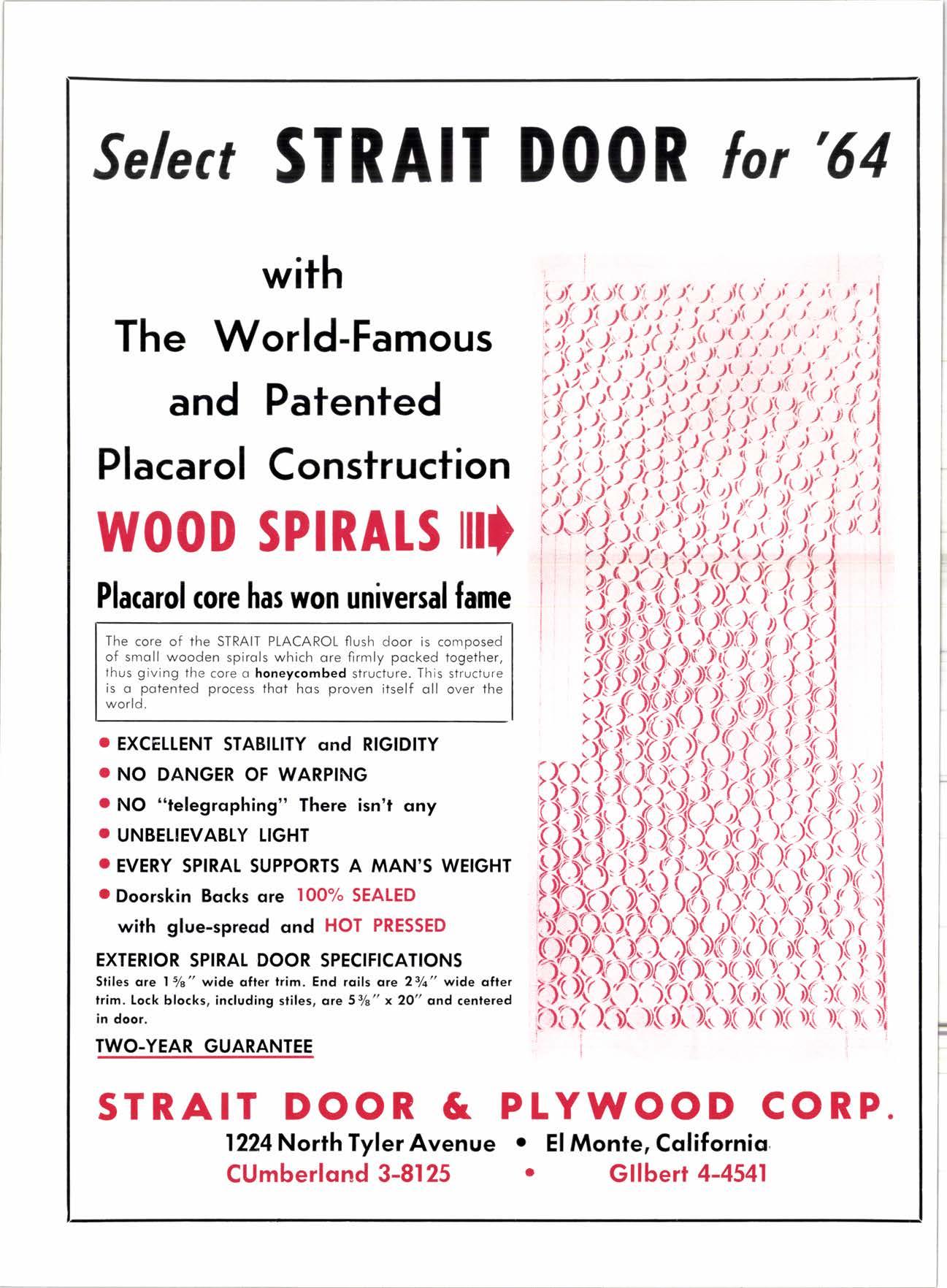The core of the STRAIT PLACAROL flush door is composed of smoll wooden spirols which ore firmly pocked together, thus giving the core o honeycombed structure. This structure is o potented process thot hos proven itself oll over the world.