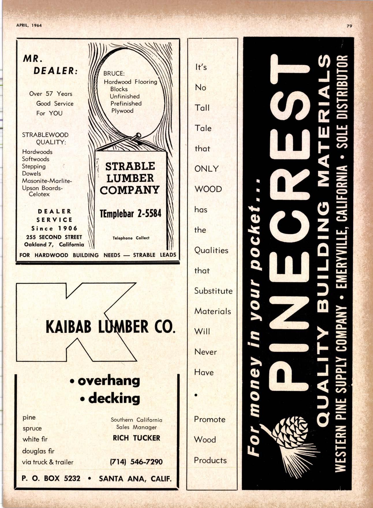 As lumber requirements become more specific, it becomes more difficult for retailers by themselves to sustain inventories based on past contacts. Variations in species, in proprietary wood products, in grade requirements all mean a broader list of sources of supply than ever before.