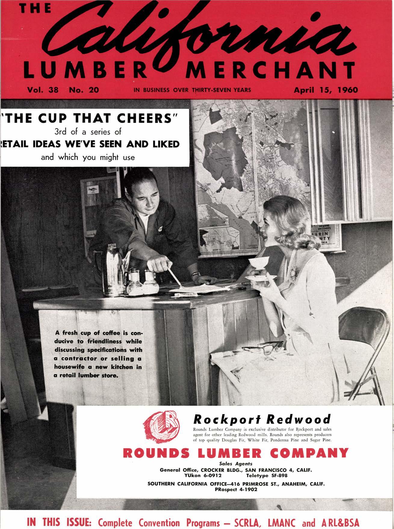 .THE CUP THAT CHEERS'' 3rd of a series of IETAIL IDEAS WE'VE SEEN AND LIKED ' and which you might use {' &;, .;ffi" .r ;qh tt", :B Ro ckport Re dwood Rounds Lumber Company is exclusive distributor for Rockport and sales agent for other leading Redwood mills. Rounds also represents producers of top quality Douglas Fir, Vhite Fir, Ponderosa Pine and Sugar Pine. NOUilDS IUftIBER COMPANY Soles Agenfs Generol Oftice, CROCKER B[DG., SAN FRANCISCO 4, CALIF. YUkon 6-o,912 Ieletype SF-898 sourHERN cAuFoRNtA OFFTCE-4|6 PR|MROSE ST., ANAI{E|M, CALIF. PRospect 4-19o2 ;i;.'i'i ;* 4,,ry drlc$vg lN THIS ISSUE: Complete Convention Programs - SCRIA, IMANC and A RL&BSA