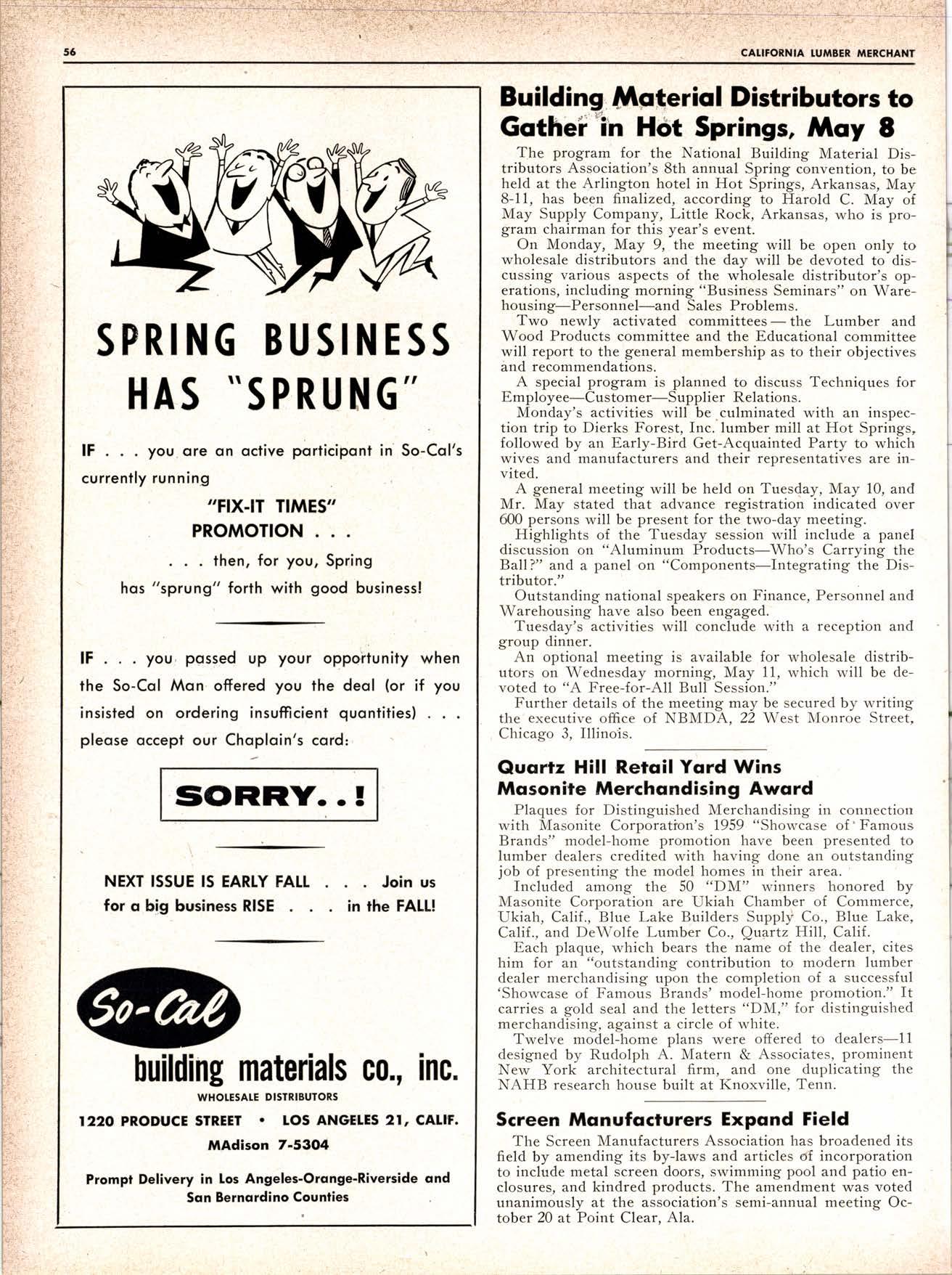 In this issue, we welcome these new advertisers into the family of California Lumber "Merchant-isers": C & D Lumber Co.... ...Page 40