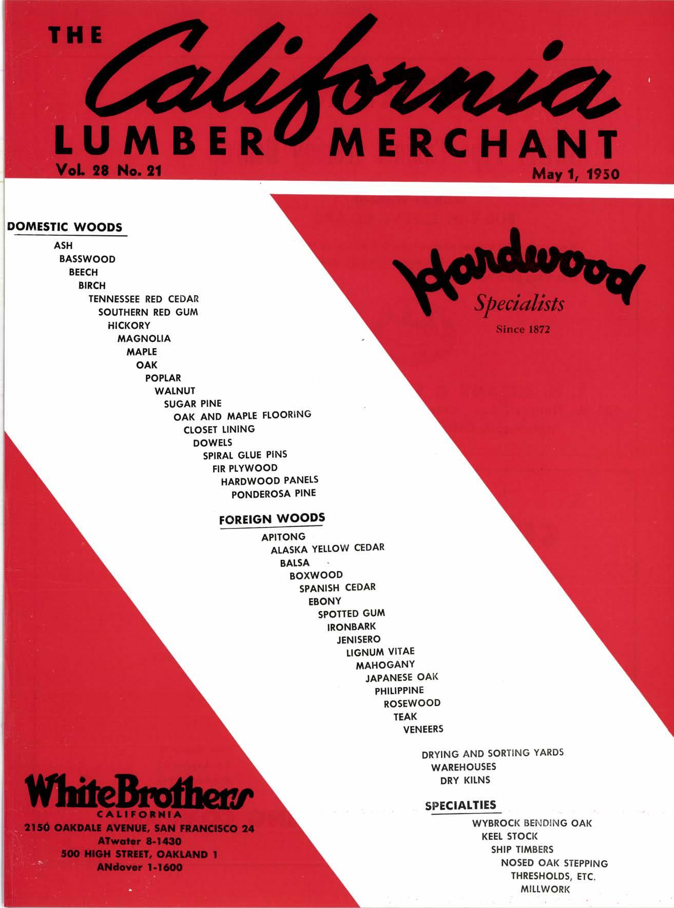 DRYT]IG Precision Kiln Drying o[ both Soltwood and Hardwood Lumber in modern cross circula' tion steam coil kilns. 25 years expeience. rwo tocArloils 1405 Wqter 5t. long Beoch 2, Cqlif. Nevqdo 6-1655 - tB 69235 l36l Mirqsol St. los Angeles 23 Angefus 2-1945 TIAHOGANY IMPORTI]IG COMPAilY