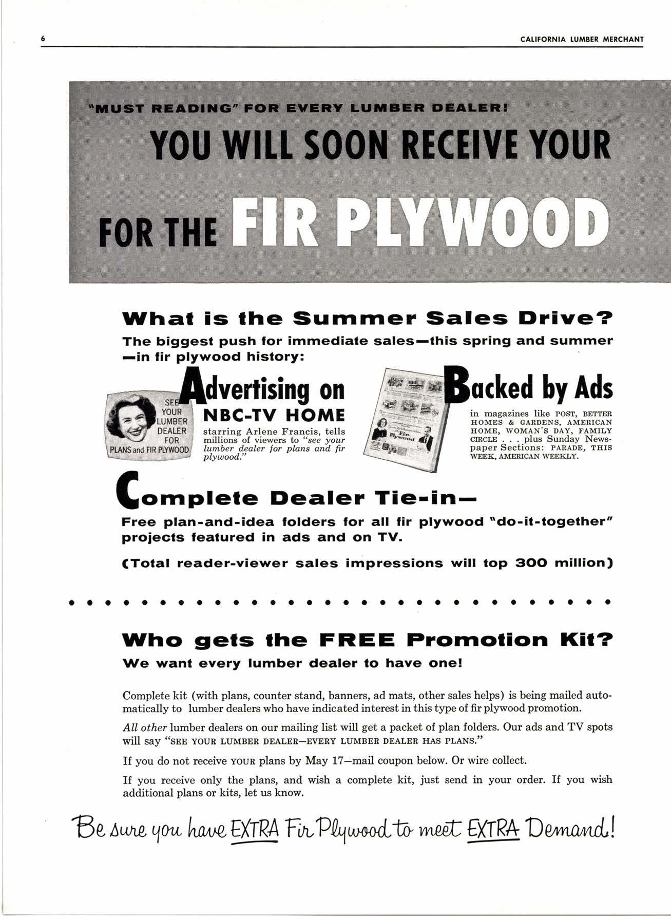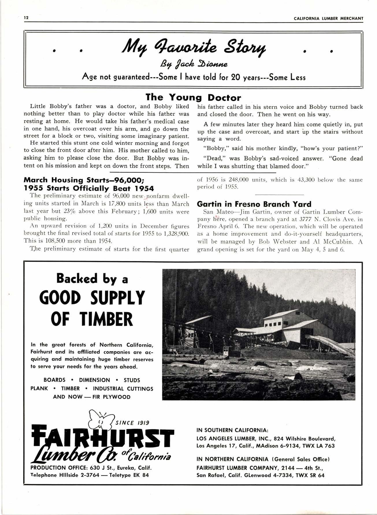 Hoo-Hoo Club in Ukioh Ai '74'7o OLE MAY SouthernCclilornic News and Advertising SAN FNANCISCO OEFICE MAX M. COOK '120 Morket St. So Frcacisco ll YUkon 2-1797 I 10 . tL 25 Yeors Ago Personqls Wont Ads .. .. 2 Spring qnd the Lumber Deoler-An Editoriol Fine Hordwoods Withstond A-Bomb Dcmoge Arizona Deqlers to Hold Annuql Mov 17-18-19 8 IO 20 25 28 JO 40 54 OJ 68 Out ol the Woods Shortoge of Apprentices in Picture Personqlities Poqe Building Industry