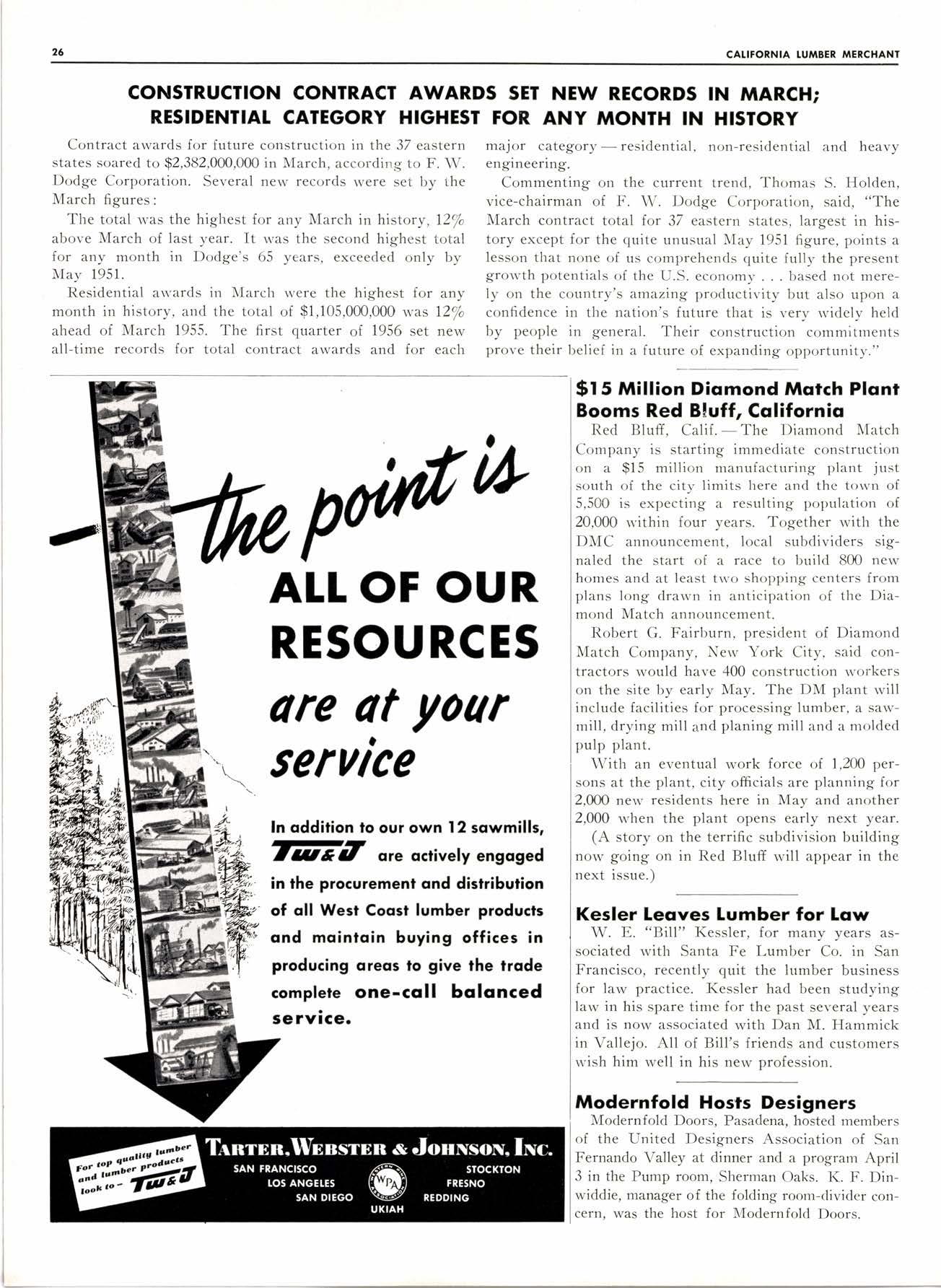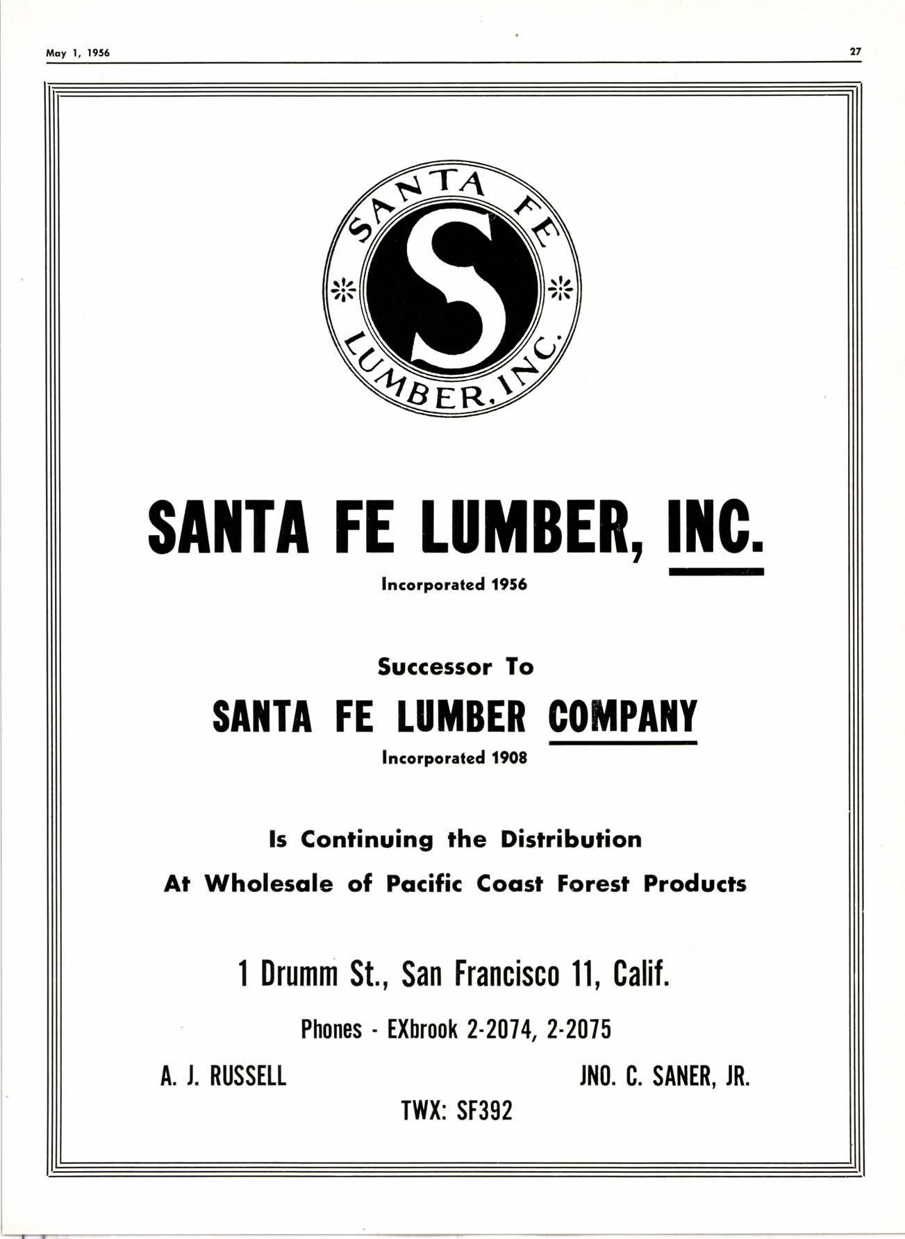 BEACH LUMBER Robert L. Taube.. SASH_DOORS MILLWORT_SCREENS PIYWOOD_BUILDING MATENIALS .HEmlock 2-7623 Hcllinqn Mcckin Lumber Co........JUniper 4-6262 Hammond Lumber Co.. ..DOuglcs 2-3388 Hqrbor Lunber Co. Inc,. ...YUkon 2-6919 Helms-Brom Lumber Co.. ..YIIkon 2-0{28 I. E. Higgins LunbEr Co..........VAlencic 'l-874'l Hobbs Wqll Lumber Co.. .GArlield l-?752 Lqmon Lumber Co,..... ....YUkon 2-{376 The Long-Bell LumbEr Co.. .EiKbrook 2-8696 Lumber Scles Co...... ....JUniper 6-5700 McCloud Lumber Co.. ....EXbrook 2-70tll Mcrtinez Co., L, W,. ......ElXbrook 2-3644 Pccific Lumber Co., The. ..GArlield l-3717 Pccilic Westem Lumber Co,.....DAvenport 4-4781 Ricci d Kruse Lumber Co...........Mlsgion 7-2576 Rockport Redwood Compcny........YIIkon 6-0912 Boddiscrclt Lumber Scles. .trTwcter 2-12fi1 Scntc Fe Lumber. Inc.. .EXbrook 2-207t1 Simpson Redwood Conpcny. .YUkon 6-6724 EXbrook 2-0736 HANDWOODS Dcvis Hqrdwood Co.... ...TUxedo 5-6232 J. E. Hrgsins Lunber Co..... .....VAlencic 4-87{4 While Brothers. .ATwcter 8-1430 sAsH-DOOnS-PIYWOOD cnEsoTED LUIIBEn-POLES Bcxrer, l. H. d Co.. ........Ygkon 2-0200 !rc[ Co., Iqmes L.. .........SUt|er l-7520 Wendling-Ncthcn Co.... ....SUtter l-5383 BAY AREA LUMBEN HABDWOODS Gordon-MqcBenth. .LOckhcven 8-2578 Bruce Co., E. I.,. ... ........KElloc 3-662 MccBeath Hqrdrvood Co.........THonwqll 3-{390 Mqthis-Jenswold Hcrdwoods. ...TEmplebcr 2-083t1 Srroble Lumber Compcny.......TEmolebcr 2-5584 Whito Brothers.