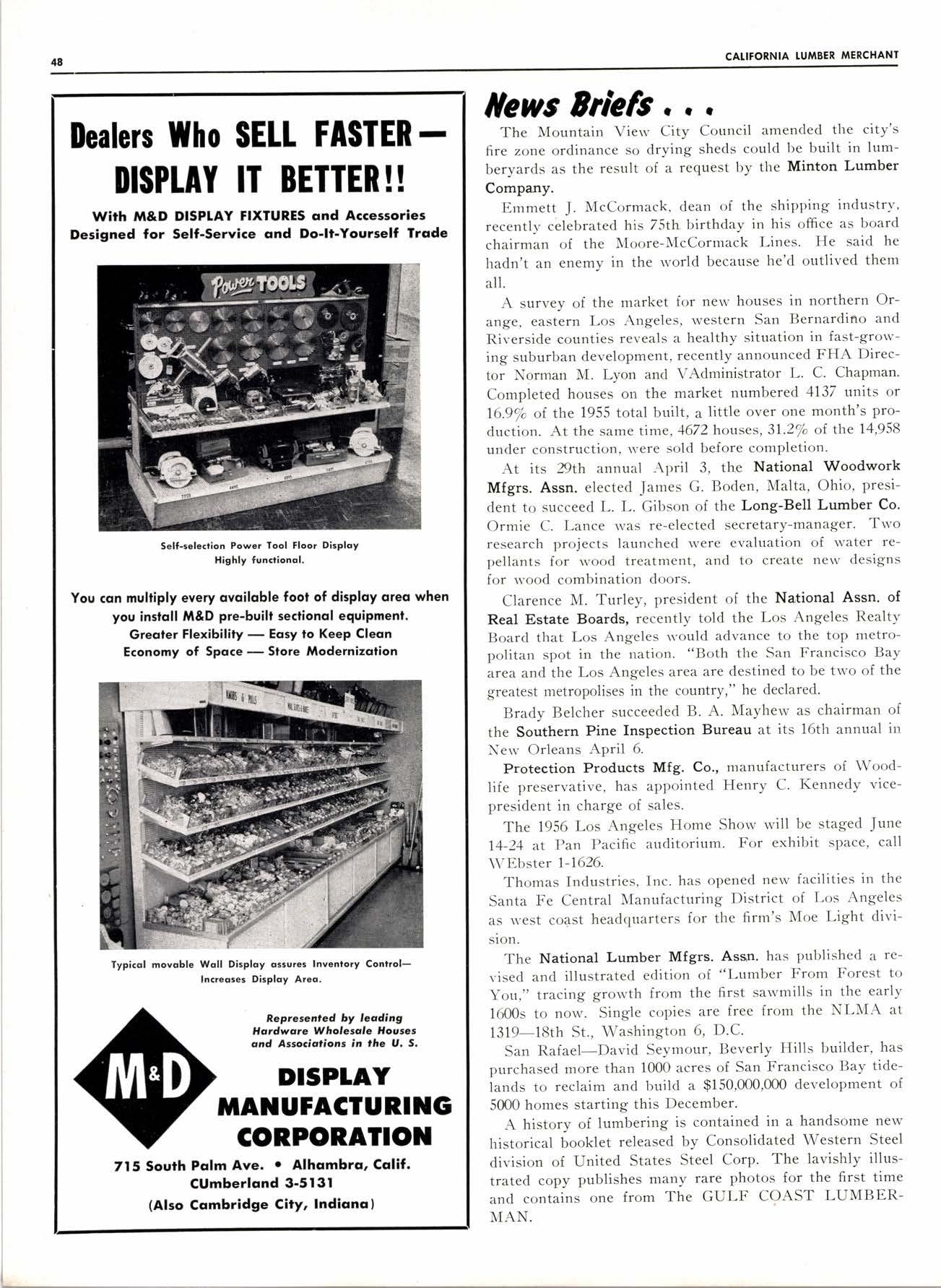 The May 15th issue of The CALIFORNIA LUMBER MERCHANT will be a special Convention Issue containing complete pictorial coverag'e of both the Southern California Retail Lumber Assn. 39th annual at the Los Angeles Ambassador April 17-19, and the Lumber Merchants Assn. 16th annual at Rickey's Studio Inn, Palo Alto, April 23-25. Advertisers should be u'arned that forms for this issue u'ill close on Mav 5.