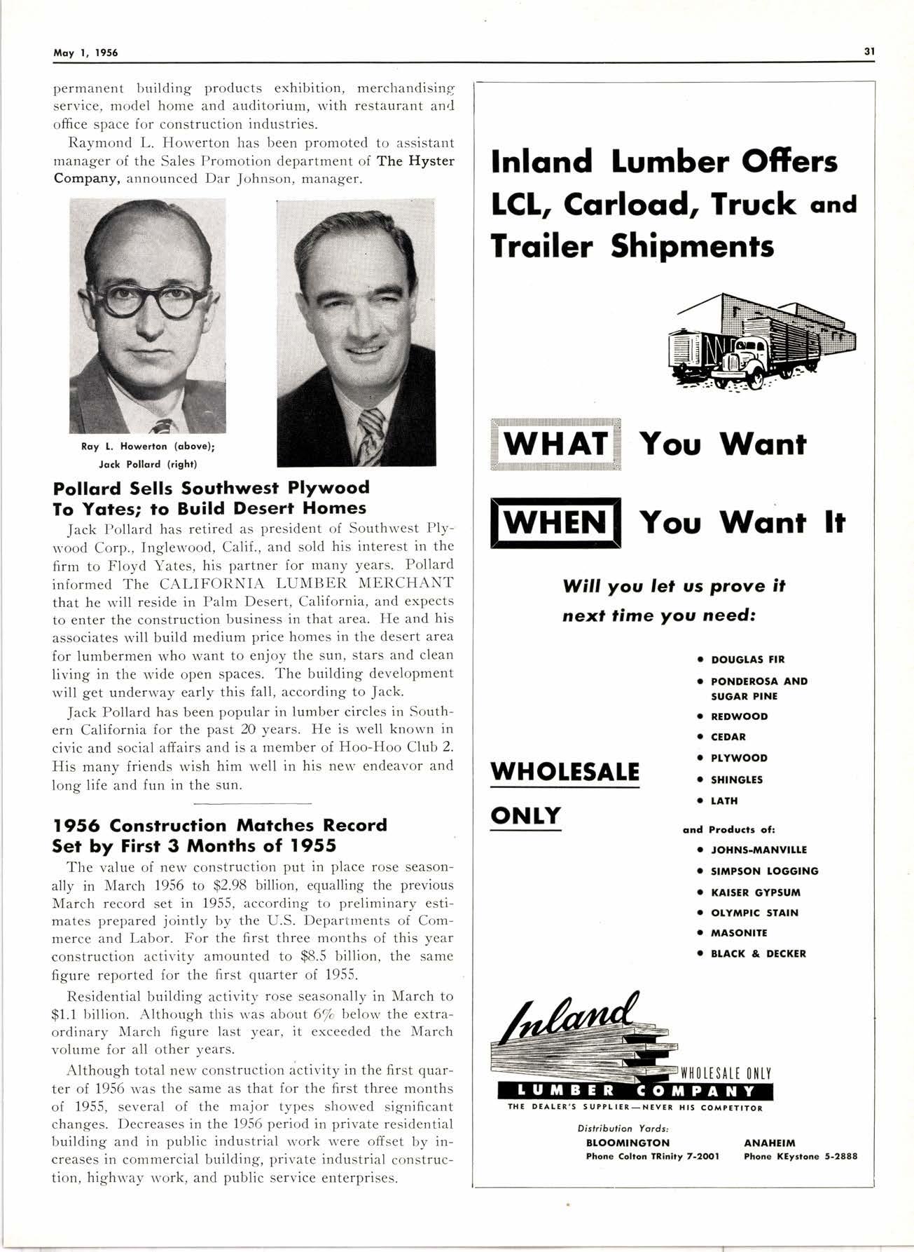 lncorporcted ulder the laws ol Cclilonic I. C. Dioue, Pres. qnd Trece.; t. E. Marti!, Vice Pree.,' M. Adcms, Secretcry Published the lst and l5th ol each month ct 508-9-10, 108 West Sixth Street, Los Angeles, Ccrlil., Telephone VAndike 4565 Eatered cs Secoud-clcss matte! S€ptsmbet 25, 1922, ct the Poat Office ct Los Algeles, Cclilonia, under Act ol Mcrch 3, 1879 Subscription Price, $3,00 per Yecr Single Copies, 25 centg ecch LOS ANGELES 14, CALIFORNIA, N'IAY T, 1956 Advertising Bctes on Appliccrtion