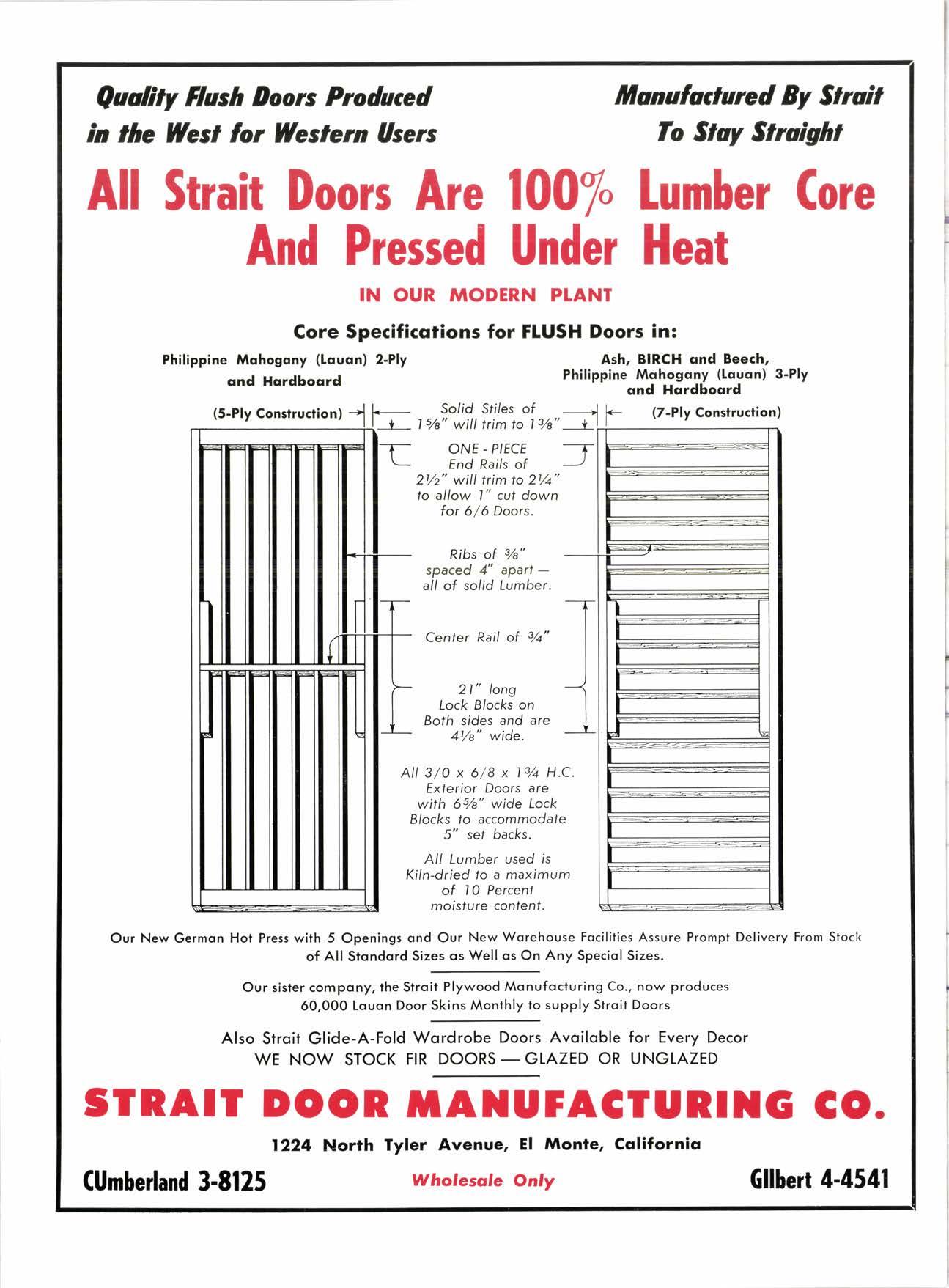 "Personqlized Service" l0l75 Rush Street, El Monte, Gqlifornio CUmberlond uNroN Gllbert 3-6216 MADE 3-3131 Member ol the Soufhern Colilornio Door lns/itvte q,nd Woodwork fnstitute oJ Colilornio