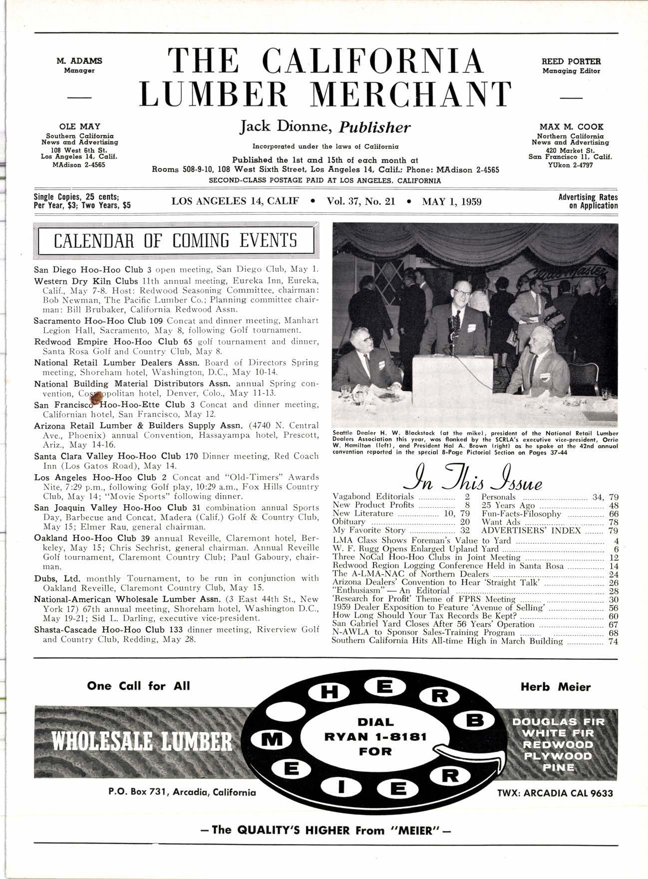 meetlng, Central Prescott, REED PORTEE Maacadsgr Edllor MAX lvt. COOK Norttcn Colilonic News qrd Advertisiag 420 Mcrket St. Sm Frocisco ll, Cclil. YIILon 2-179? Incorporatcd uder the lcws oI Cclilomic Published the lst cad l5th oI ecrch sronth ct Rooms 508-9-10, 108 West Sixth Street, Los Angeles 14, Calil.; Phone: MAdison 2-4565 SECOND.CLASS POSTAGE PAID AT LOS ANGELES, CAIIFOBNIA LOS ANGELES 14 CALIF o Vol.37, No.21 . MAY I, 1959 Advertising Ratcs on Application