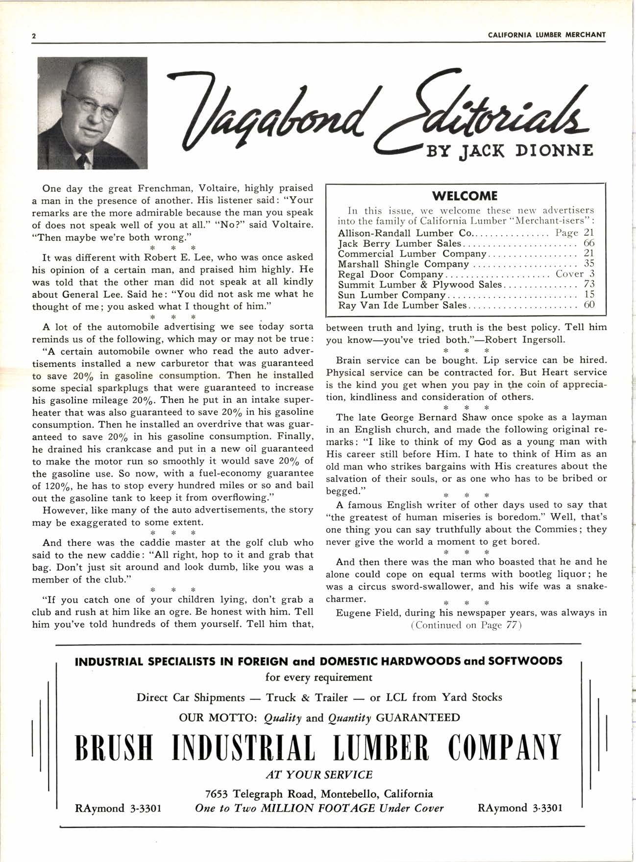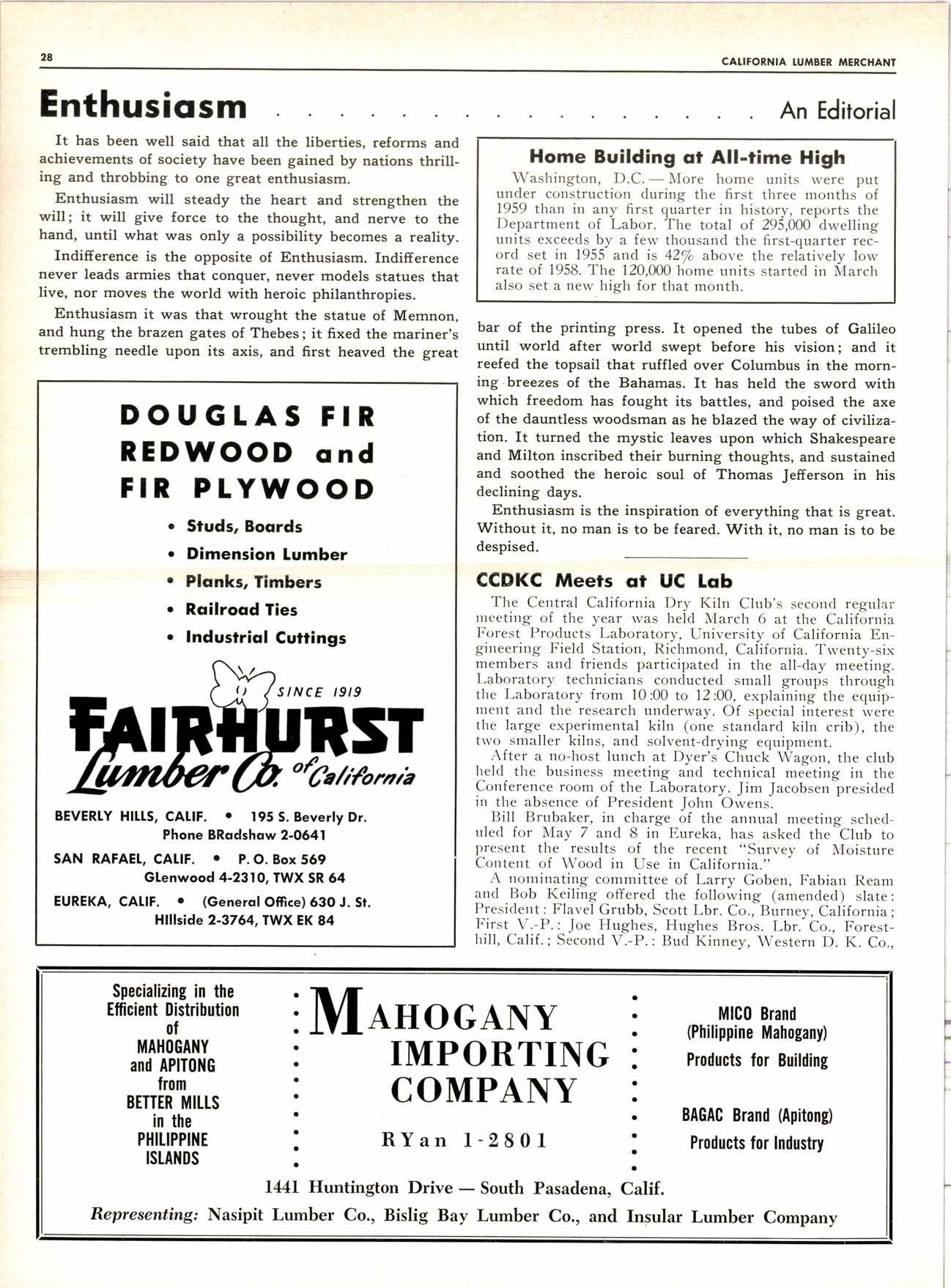 In this issue, we welcome these new advertisers into the family of California Lumber "Merchant-isers" :
