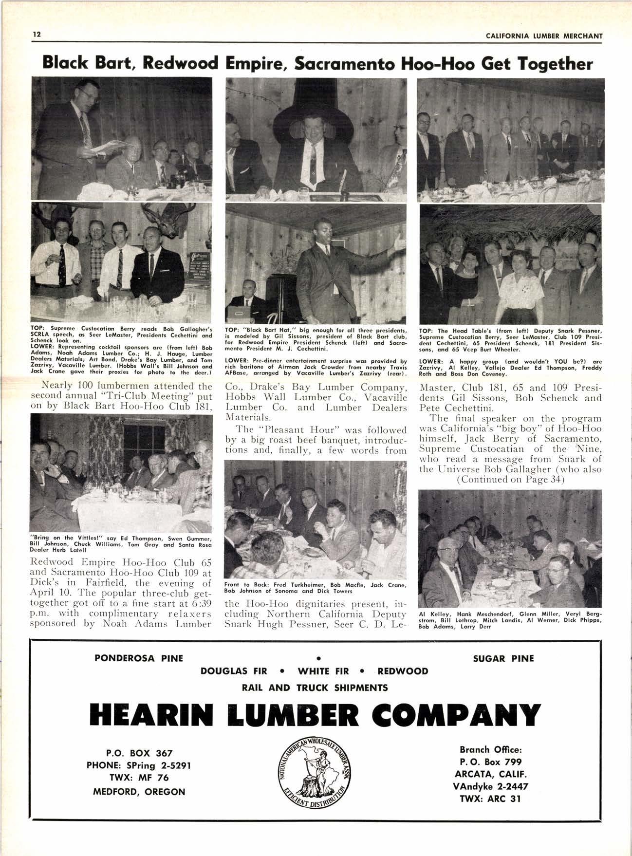 San Diego Hoo-Hoo Club 3 open meeting, San Diego Club, Mav 1.