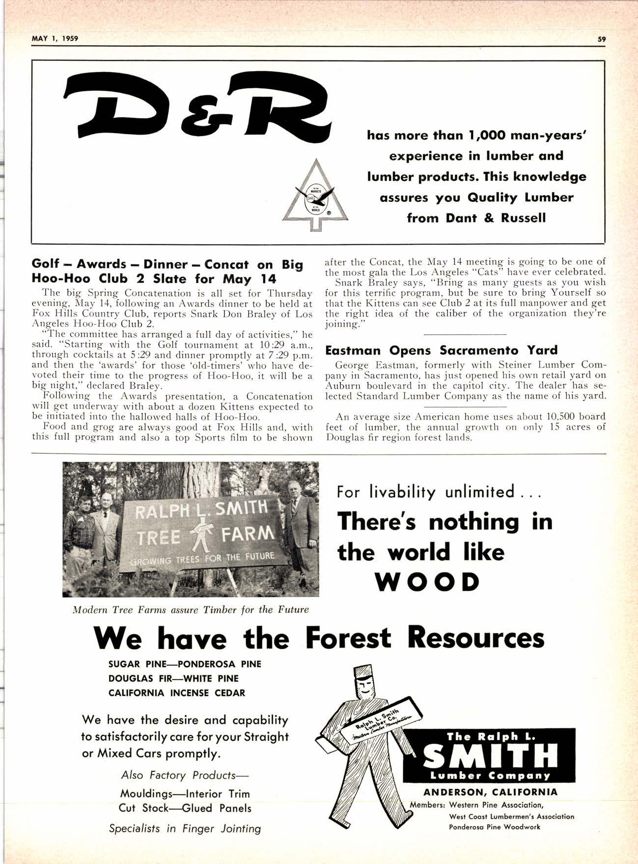 San Joaquin Valley Hoo-Hoo Club 3l com'bination annual Sports Day, Barbecue and Concat, Madera (Calif.) Golf & Country Club, May 15; Elmer Rau, general chairman.