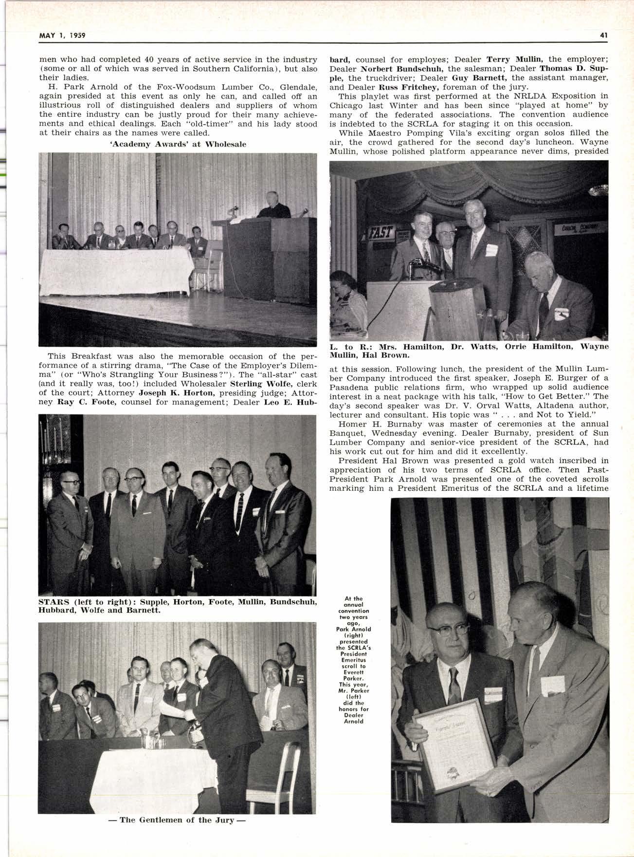 Seqftle Deoler H. W. Bld(k3fo(k (ot the mike), president of the Noridol Retoil Lmber Deqleff Associotion thit yeql, wq floked by the SCR[A': executiv€ vice-pteridst, Orrie