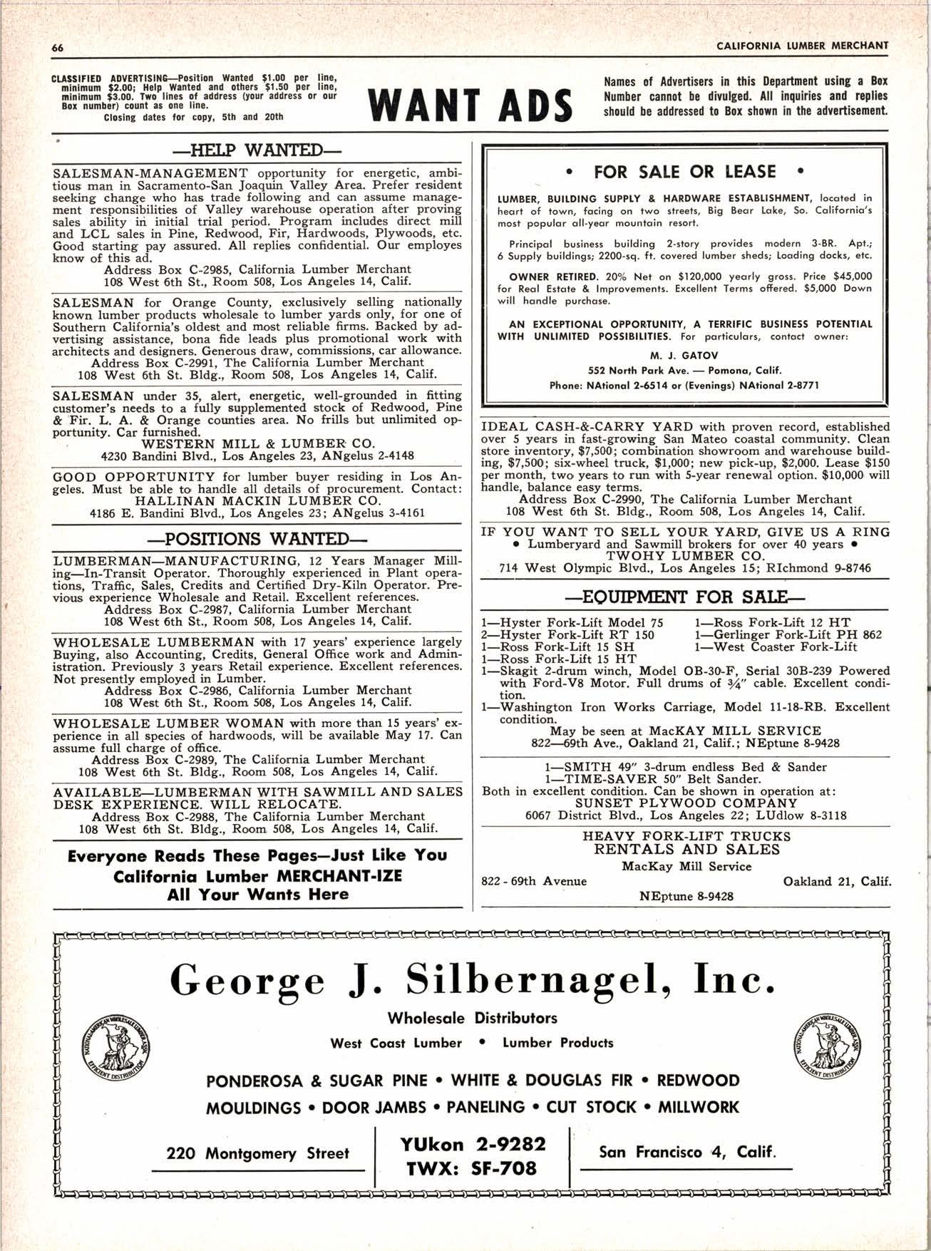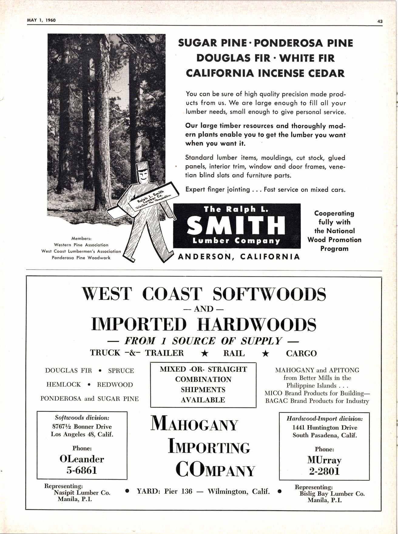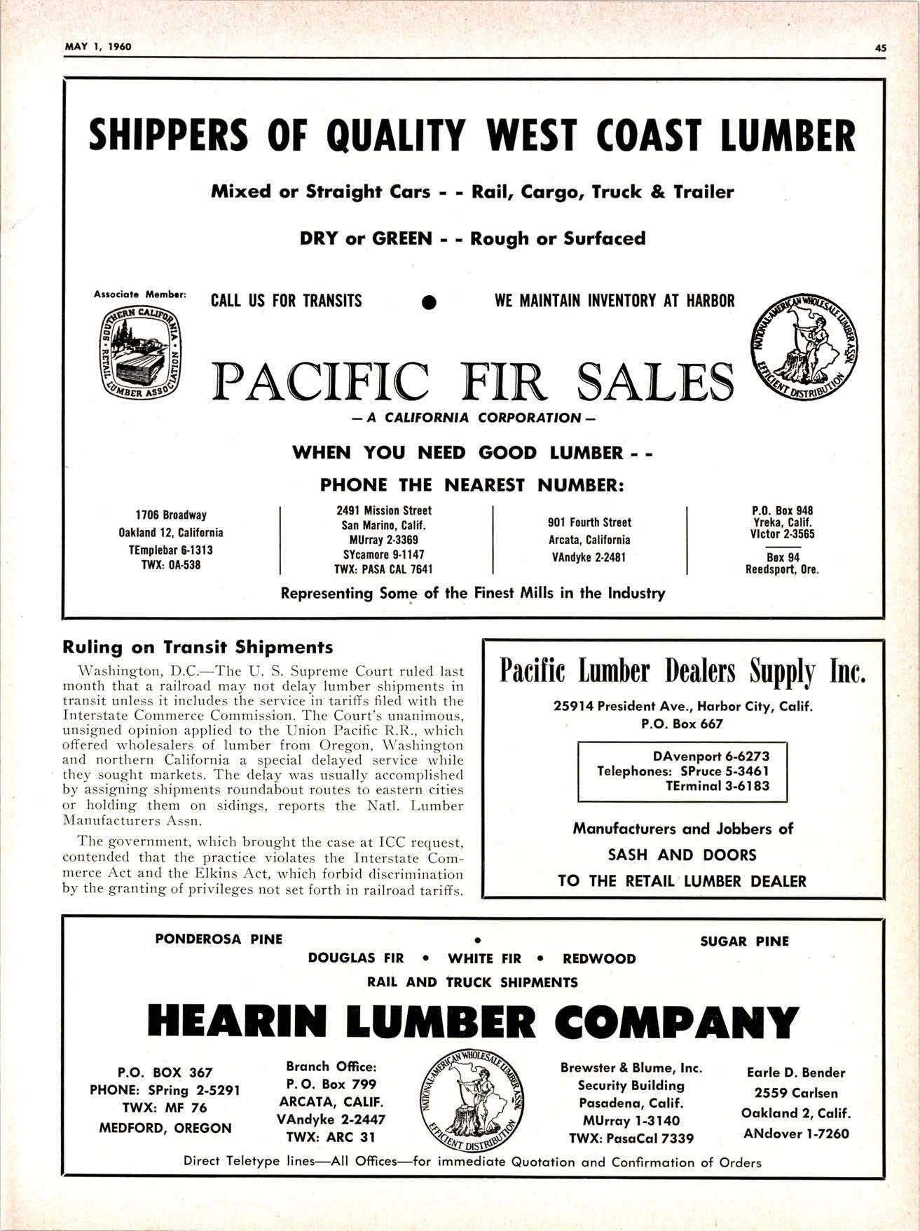 Forest Lumber Co., Pasadena; Secretary-Robort II. Leishman, partner, Crown City Lumber & Mill Co., Pasadena.