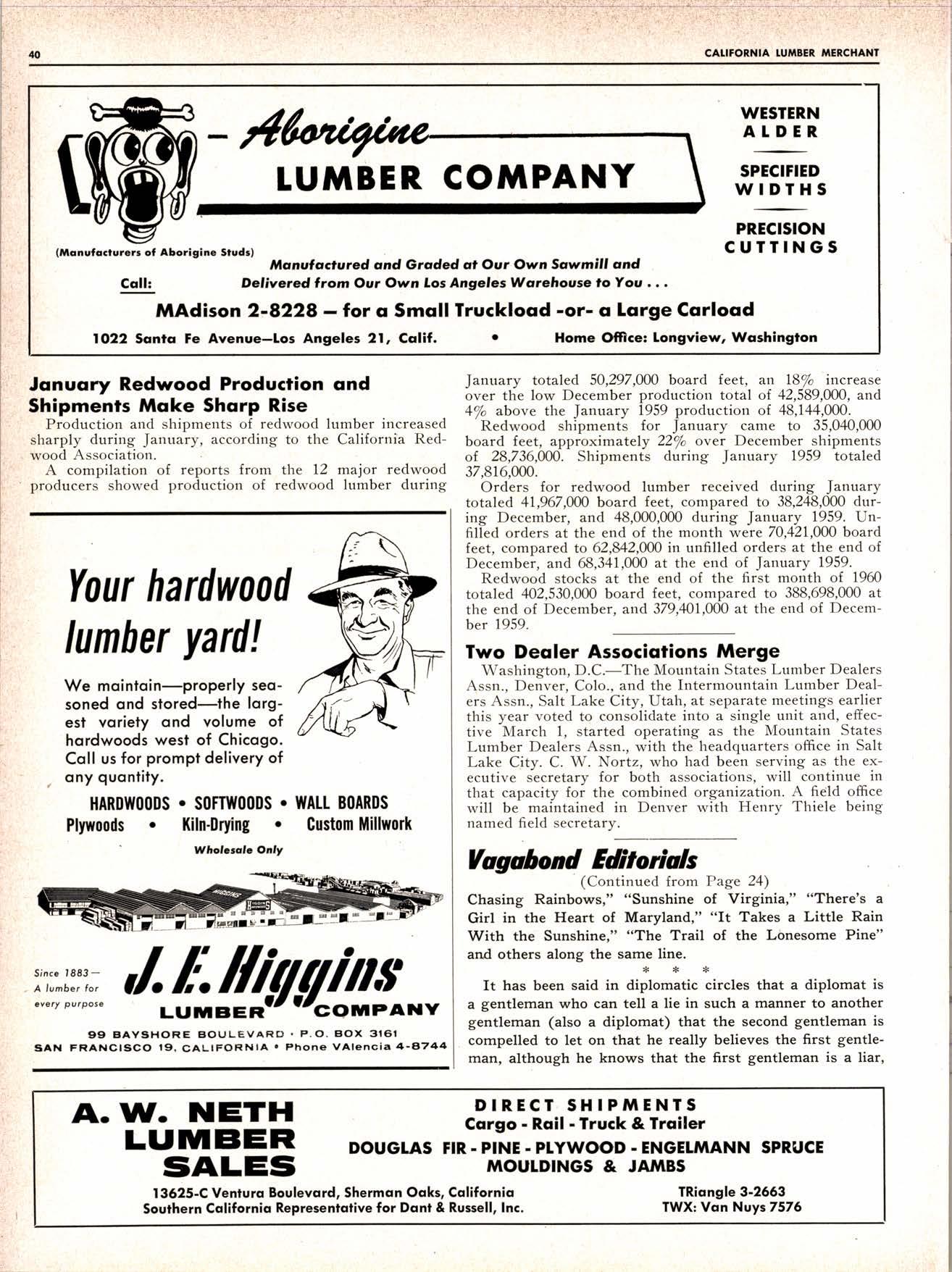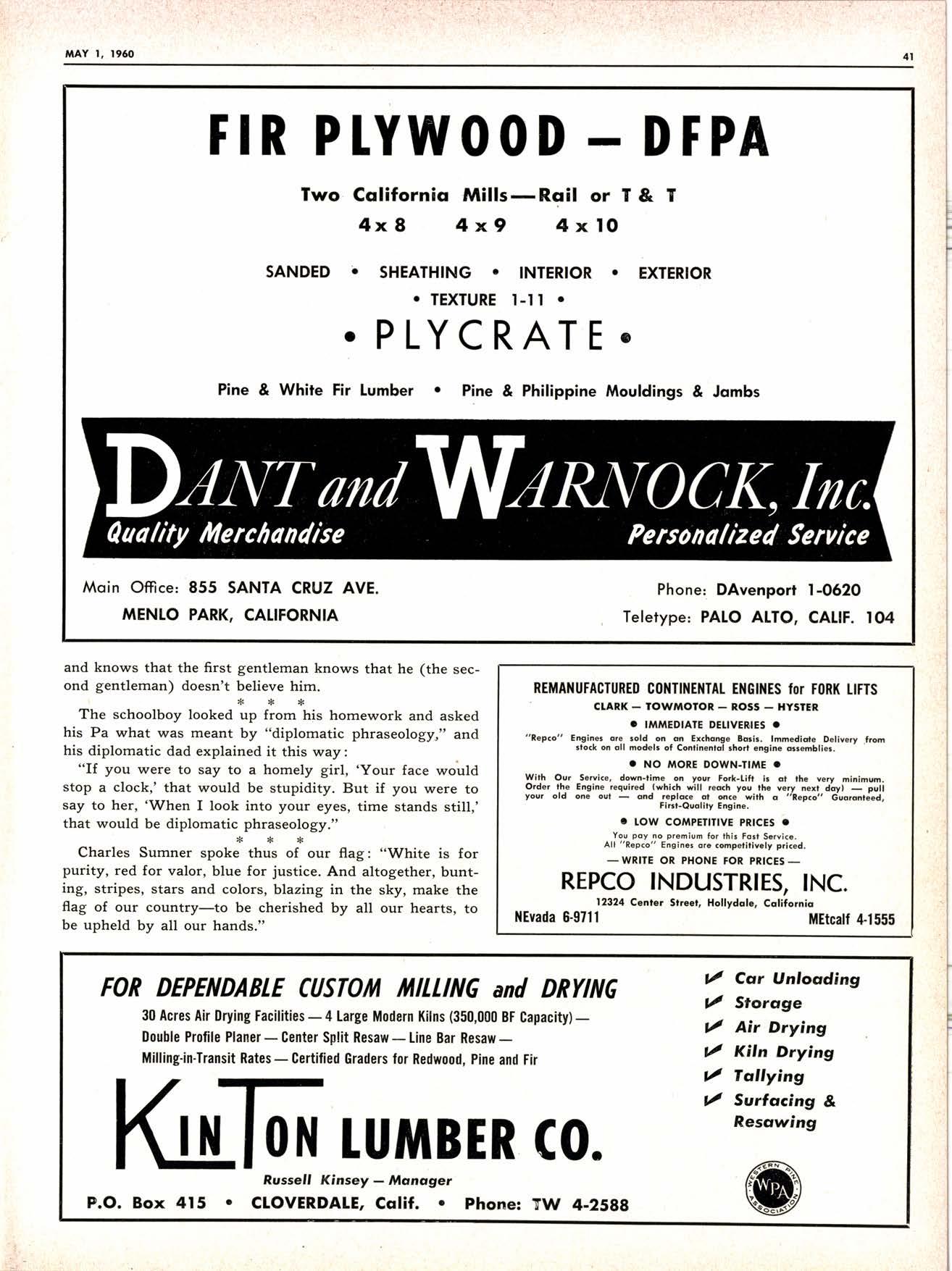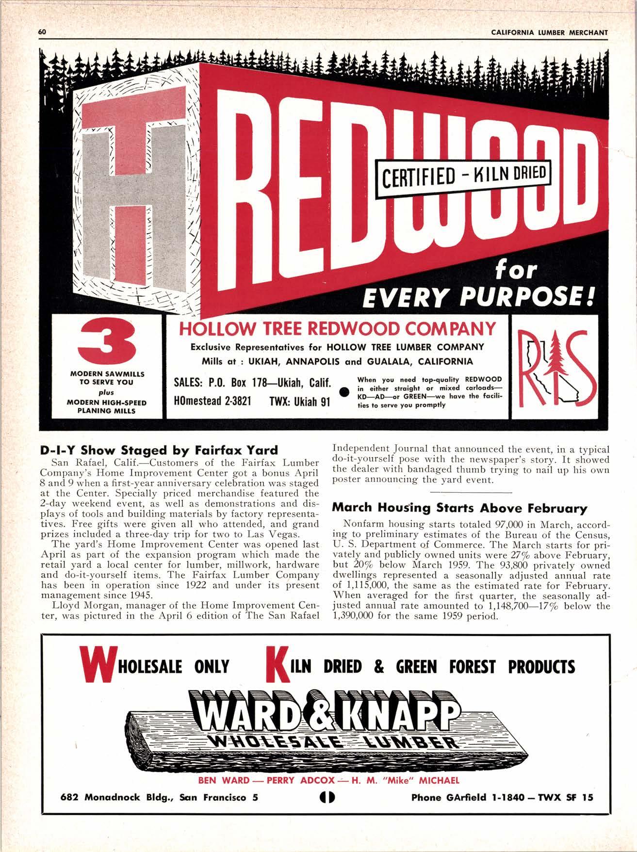 With President C' Gilmore Ward (president, Ward & Harrington Lumber Co., Santa Ana) o{ffciating, the activity started at 8:30 a'm'' Aoril lg, wiih the annual Directorst breakfast in the Lido room for the el-ection of 1960-6I officers and directors, plus the necessary Association business discussions.