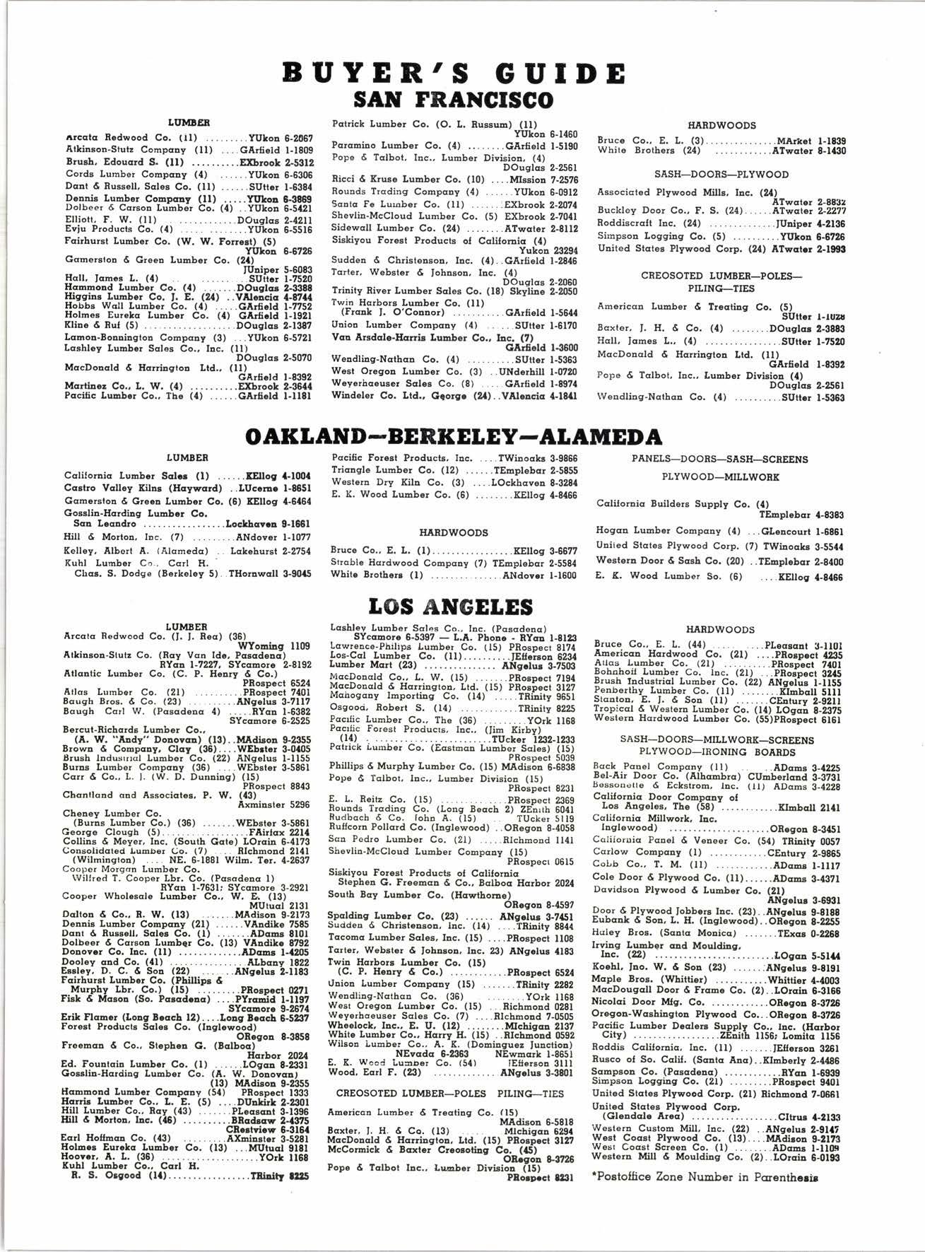 Plywood Millg, lnc. (ll)ATwqt.r 2-8832 Buckley Door Co., F. S. (2{). .ATwalet ?-?i27? Roddiscrclt Inc. (?!) .....lUaipcr l-2136 Simpson Lossiag Co. (5) ..........YUtoa 8-6728 United Statos Plywood Corp. (24) ATwctor 2-lg0!