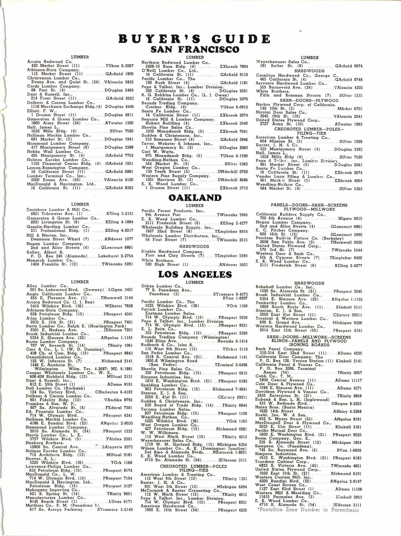 Horbor Plywood Corp. oI Cclifornic, 5{0 l0th St. (3) .....MArket 6705 Nicolqi Door Sclcs Co., 3045 tgth St. (10) .....VAlencic 2241 United Stctes Plywood Corp., 27tl Any St.- (10) ....ATwcter t993