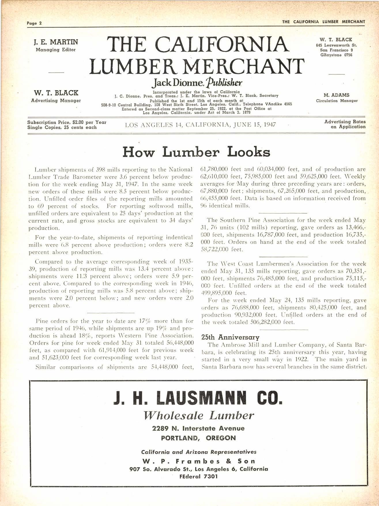 The Ambrose l\Iill and Lun.rber Company, of Santa Barbara, is celebrating its 25th anniversary this year, having started in a very sn-rall u'ay in 1922. 'Ihe main yard in Santa Barbara now has ser-eral branches in the same district,