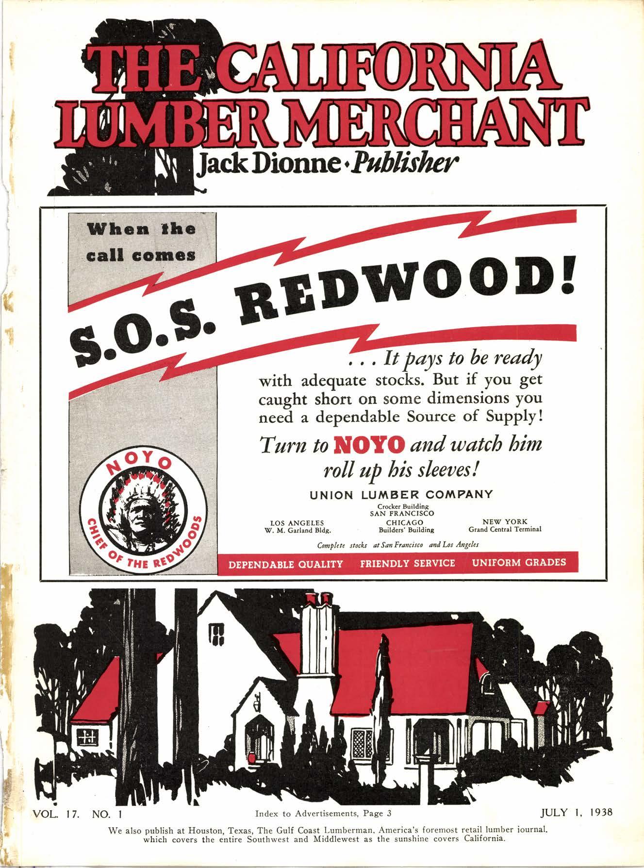 JackDionne ,Publisher (t. ,\c 0.P' O- -J --z BE Ttt Pnlt to be ready with adequate stocks. But if you get caught short on some dimensions y9u need a dependable Source of Supply ! Turn ra NOYO and tuatch him roll up his sleeaes ! UNION LUTNBER CO'NPANY '^:^1"$i'^"'i3i$3. LOS ANGELES CHICAGO NETT'YORK !f. M. Garland Bldg. Builders' Buildine Gtand Ccntral Terninal Conphn $ockt atsaxFrancirco andl'ot Angcht DwoorD! ffi a voL 17. . I Index to Advertisements, Page 3 JI We also pubtish at Houston, Texas, The Gulf Coast Lumberman. America's foremost retail lumber iournal. which covers the entire Southwest and Middlewest as the sunshine covers California. JULY |, 1938
