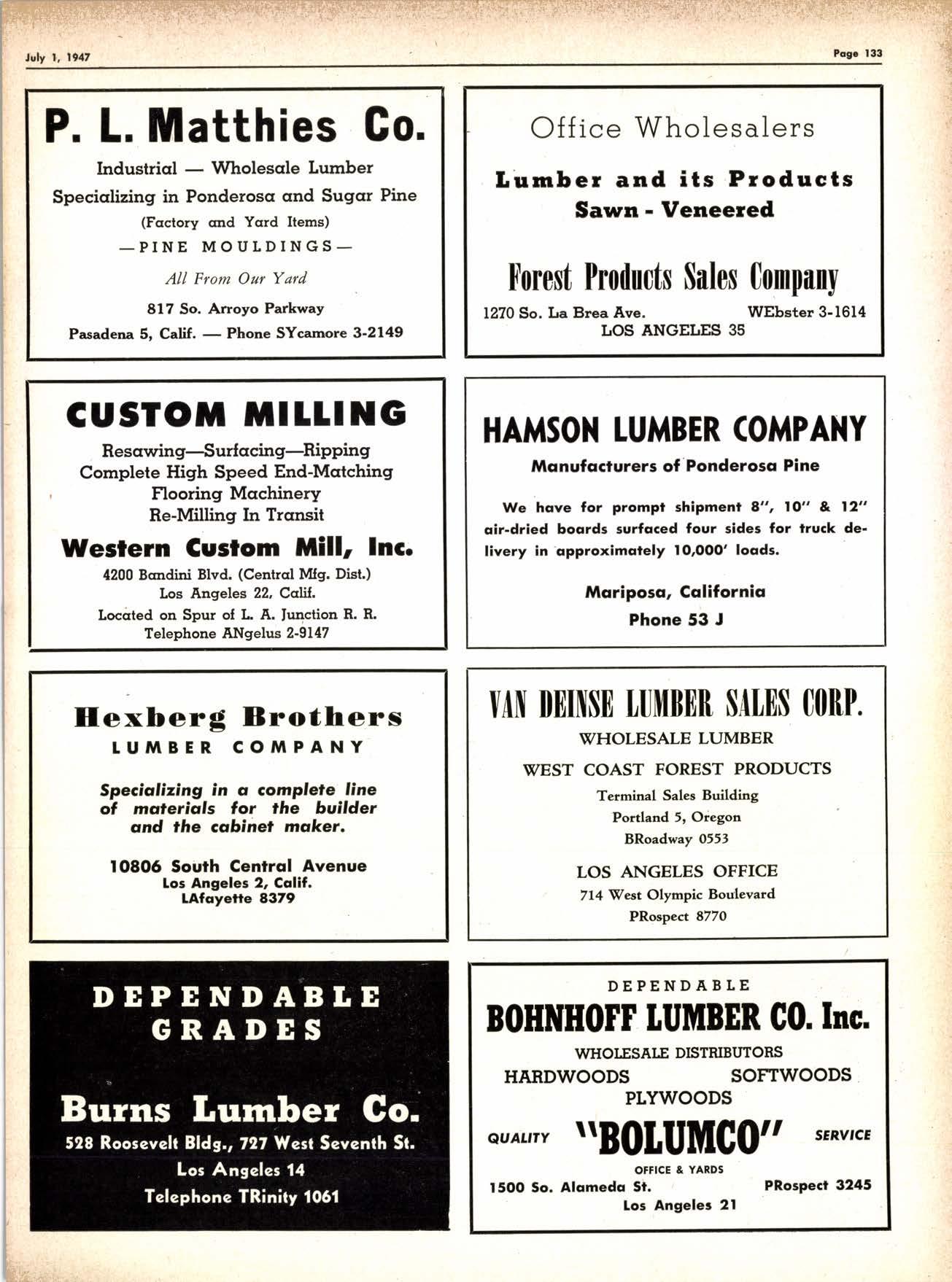 Here Are The Advertisers In The First Issue of The California Lumber Merchant