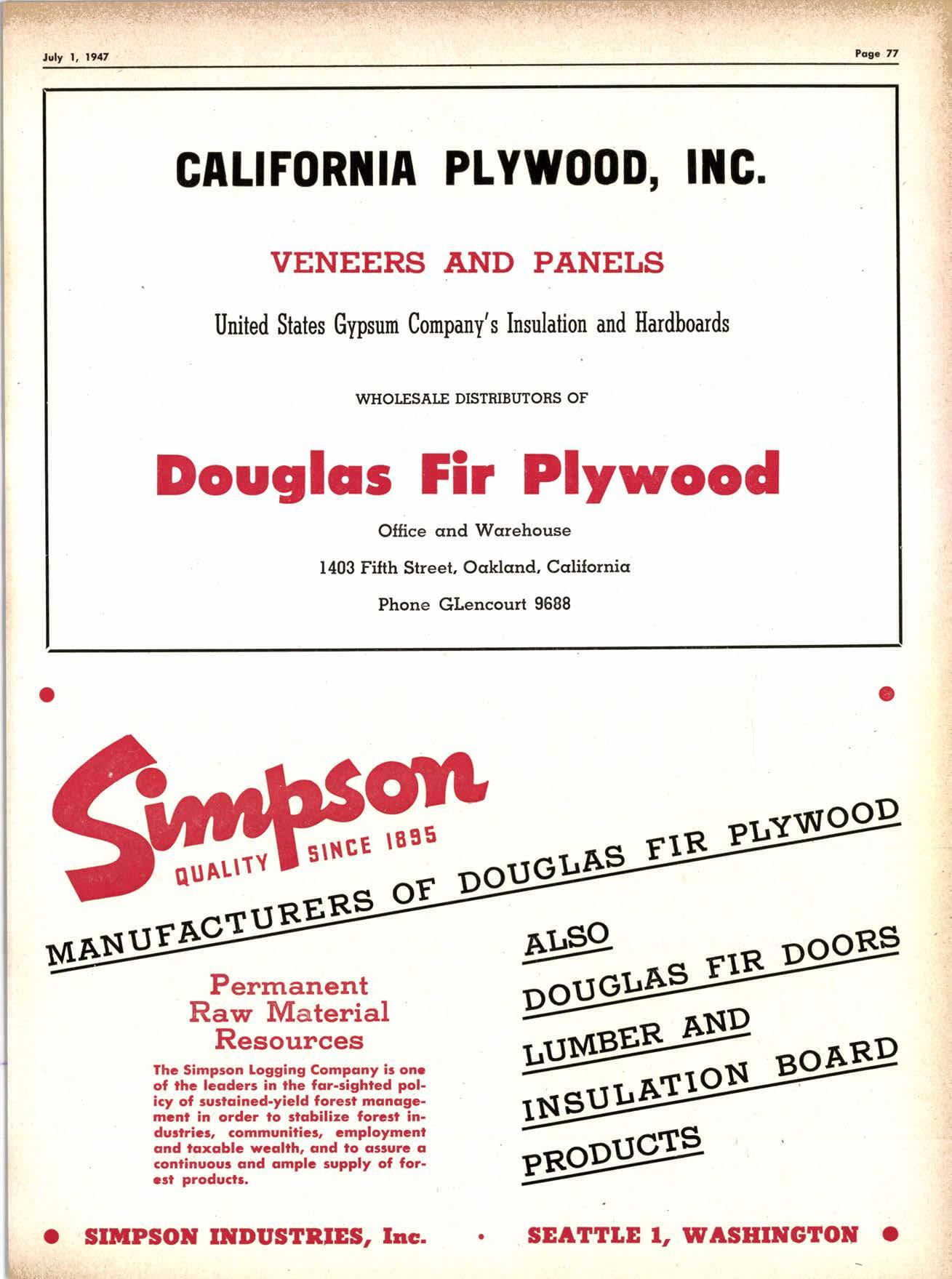 Pope & Talbot, Inc., congratulates you the California Lumber Merchant, on your twenty-fifth Anniversary. In every field of endeavor, there is alwayE one who takes the lead . . . forstng ahead to high standards and service. Now old enough to chart the course, and young enough to sail it, the California Lumber Merchant is a vital factor to the lumber industry and has contributed greatly to its progre$. Pope & Talbot, Inc., at the threshold of its 100th anniversary, tips its hat to the California Lumber Merchant and says, ttYou have done a real job. Continued Euccesr to you, and grateful appreciation to your editors."